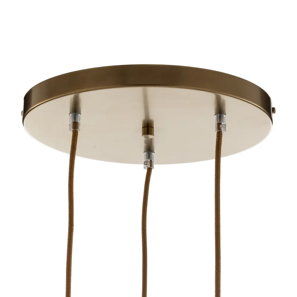 Hengelampen Monte, 3 lyskilder, rund, gull, kombinerer moderne design med høykvalitetsmaterialer som glass, metall og plast. Kombinasjonen av røykgrå og gullfargede elementer gir lampen en tidløs eleganse som passer perfekt i stuer og spisestuer. Lampen er produsert i Europa og imponerer med sin spesielle finish og stilige utseende.