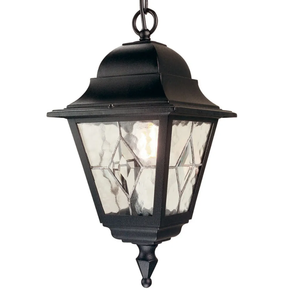 Med Norfolk pendellampe , er det overbygde uteområdet, som f.eks B. utstyre en pergola eller et takoverheng med atmosfærisk belysning. Norfolk sprer også en koselig herregårdstil med sin vakre lanterneform og antikke design. Hver glassrute består av fem individuelle deler som er blyglasset for hånd.