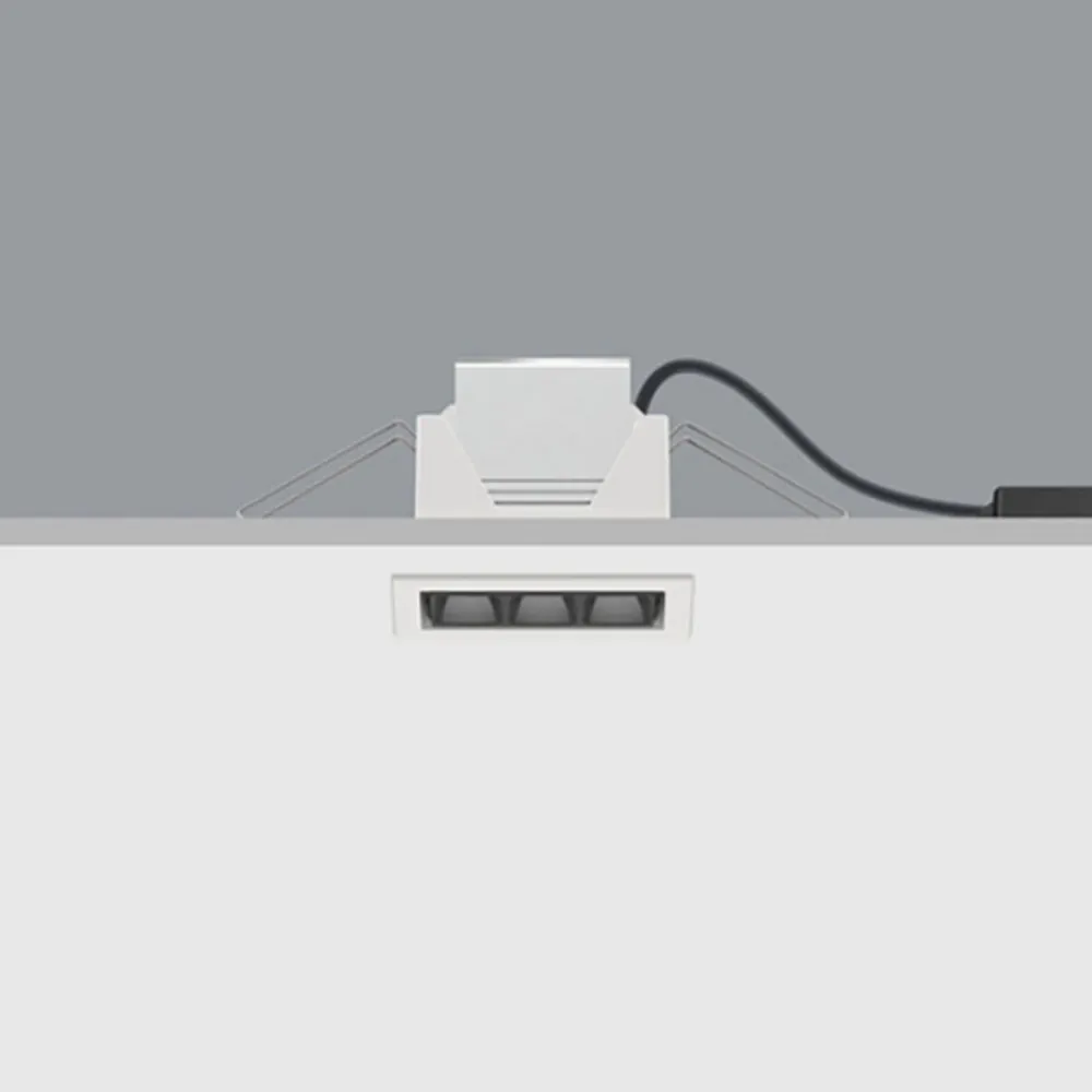 Den rektangulære innfelte downlight Compar sikrer et stort område med generell belysning og arbeidsbelysning, for eksempel i moderne kontorer. Den er utstyrt med høyeffekts LED-er, hvis lys sendes ut som en bred kjegle gjennom en linseteknologi laget av optisk polymer og er blendingsfri av et blendingsskjold. Den kompakte designen, et eksternt forkoblingsutstyr som kan plasseres variabelt over undertaket, monteringsfjærene og tilkoblingen ved hjelp av en plug-in terminal holder installasjonsarbeidet lavt. Lyseffekten kan reguleres via eksterne fasekuttede dimmere.