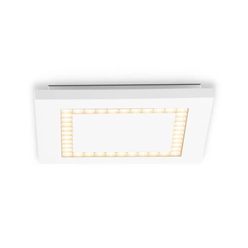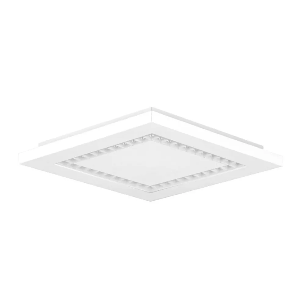 Den hvite, kantete LED-taklampe ALQ er et utenpåliggende panel laget av hvit plast, som kan brukes i taket eller på veggen. Monteringen gjøres optisk elegant uten synlige skruer. Det meget vidstrålede LED-panel er ideelt for generell belysning i arbeidsrom, ganger, kontorer, resepsjonsområder og korridorer. Armaturen er utstyrt med et LED-kontrollutstyr som muliggjør ekstern dimming via fasekontroll eller fasekontroll.