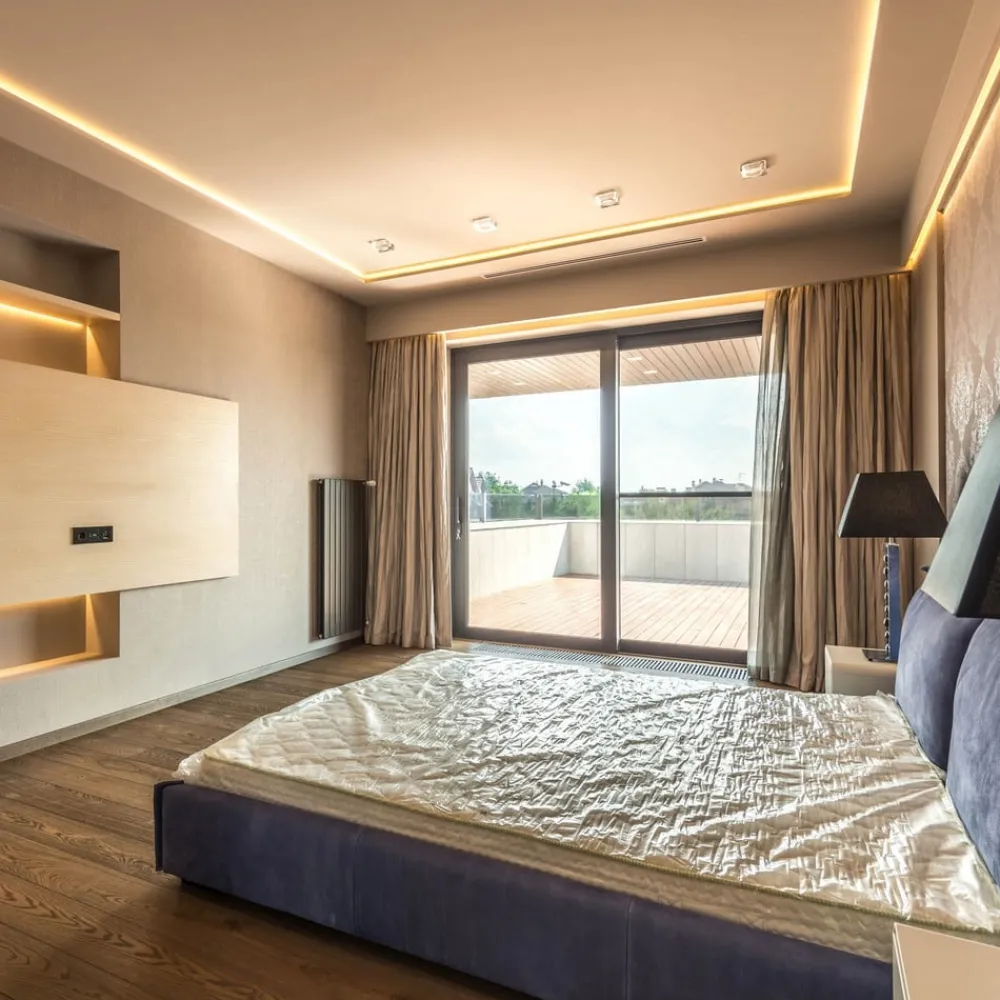 Aluminiumsprofilen APTBH brukes til indirekte belysning via taket på lette viker. Den er egnet for gipsplater med en tykkelse på 12,5 mm og LED-striper opp til 18 mm brede og maksimalt 30 W per meter. Etter at installasjonen er fullført, er ikke LED-stripen lenger synlig fra rommet. Den nedre kanten av profilen er fylt med gipsplater og stoffinnsats over et stort område, og takket være den rillede overflaten, gir den et spesielt godt hold. Fronten kan males for å matche veggen / taket / kledningen og skaper en optisk dobling av den synlige overflaten.