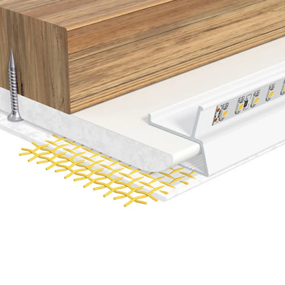 APTBU gipsprofil laget av aluminium for vikebelysning, vendt mot veggenAluminiumsprofilen APTBU muliggjør indirekte be…