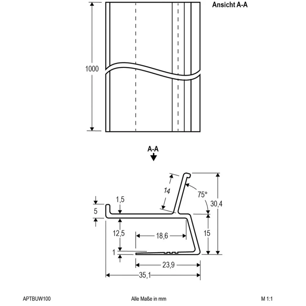 EVN APTBU alu.-profil rettet mot veggen 100cm hvit Best