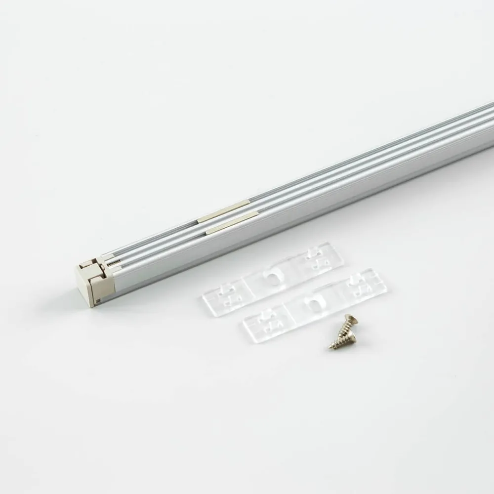 Bordo utenpåliggende LED-belysning – allsidig montering Bordo utenpåliggende LED-belysning i aluminium er utstyrt med et opalt plastdeksel som lyset skinner jevnt gjennom. Den kan monteres i tak og på vegger, men takket være utformingen kan den også brukes som underskapslampe i møbler. Den diskré designen og den enkle fargen passer inn i nesten alle miljøer. Bordo-armaturserien består av flere armaturer i ulike lengder og former. Disse kan enkelt kombineres ved hjelp av et plug-in-system for å skape skreddersydde former. Totalt kan opptil 3 meter lys drives med én enkelt strømforsyning. De festes ved hjelp av den medfølgende monteringsklemmen. Brodo utenpåliggende LED-lys kobles til via en LED-transformator, som er tilgjengelig som tilbehør.