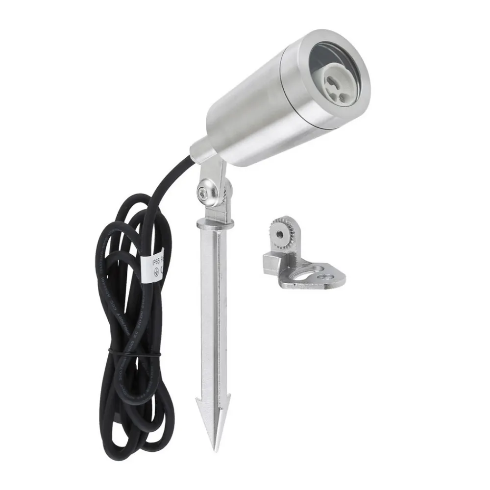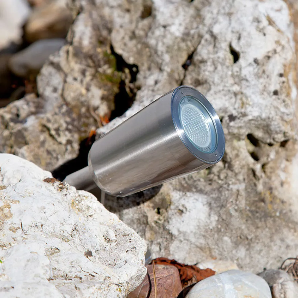 Lampe med jordspyd Gartenspot kan brukes på mange måter i hele uteområdet. Den er utstyrt med et stativ i stål som gjør at den kan monteres på fast underlag. Hvis den skal plasseres på et sted hvor underlaget består av jord eller gress, brukes den medfølgende jordspydet.