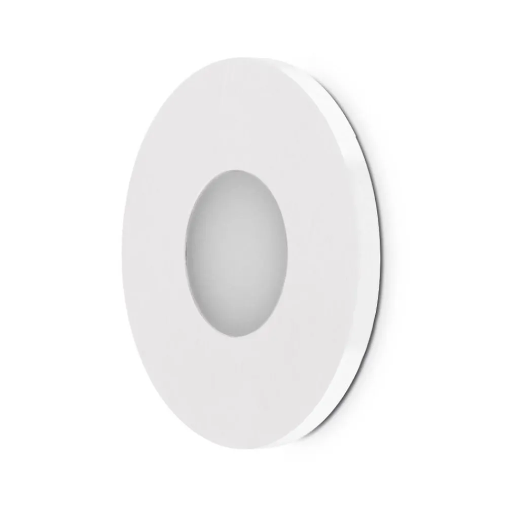 Rund LED-vegginnfellingslampe LR230 – direkte lys for orientering LED-vegginnfellingslampen LR230 er både visuelt og funksjonelt ultramoderne. Enten det er i gangen hjemme eller i korridoren på et hotell eller i en bedriftsbygning, gir den moderne innfelte armaturen diskret og nyttig orienteringslys. LR230 kan monteres direkte på veggen med to skruer bak det magnetiske dekselet i rustfritt stål. Innbyggingsarmaturen kan også monteres på en bryterboks. Beskyttelsesklasse IP44 oppnås takket være en innebygd tetning på baksiden. Lysdiodene er plassert bak et opalt plastdeksel – Symmetrisk, direkte og diffust lysutslipp – Mulighet for gjennomkobling – Direkte tilkobling til 230 V – Kan også brukes i møbelkonstruksjon