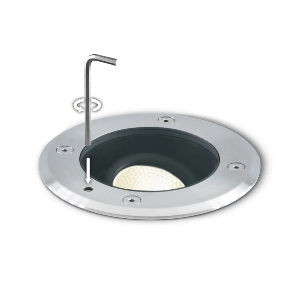 LED-bakkespot Pentola er et perfekt supplement til et moderne lyskonsept på krevende utendørsområder. Den er laget av et massivt aluminiumshus med et deksel i V2A-stål og et klart beskyttelsesglass. I henhold til kapslingsgrad IP65 tåler den vær og vind. Pentola tåler dessuten en belastning på maks. 1500 kg og kan kjøres over med en hastighet på maks. 20 km/t. Derfor er LED-bakkespot Pentola optimal for belysning av innkjørsler. Leveransen inkluderer en innfeltshylse i plast.