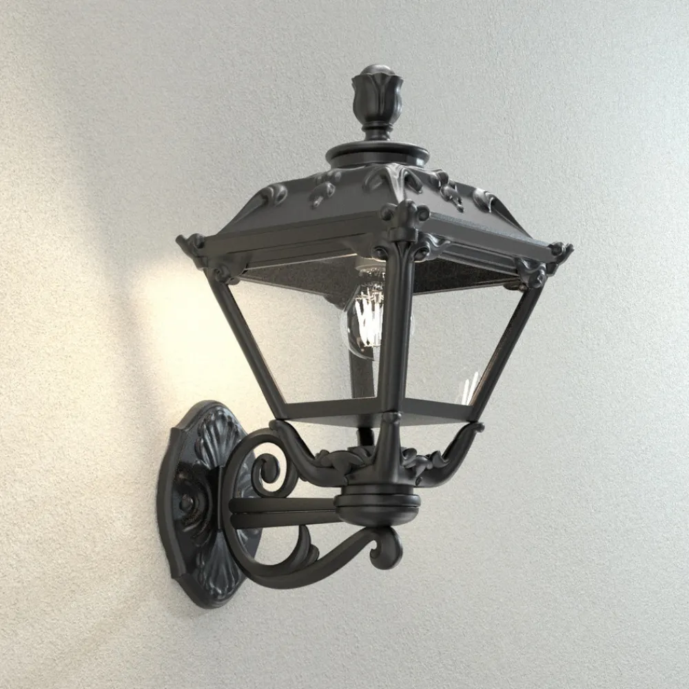 Golia LED-vegglykten er utstyrt med moderne materiale og utskiftbare LED-glødelamper i en behagelig kontrast til det antikke utseendet til denne dekorative lyskilden. Materialet som brukes er en robust plast (polyresin), som er motstandsdyktig mot effekten av UV-stråler, LED-lyskilden er inkludert. Effektiv fasadebelysning når det gjelder lysutbytte og dekorativ verdi. Laget i Italia.