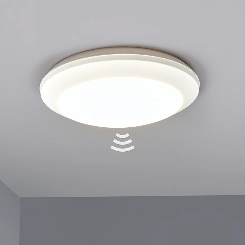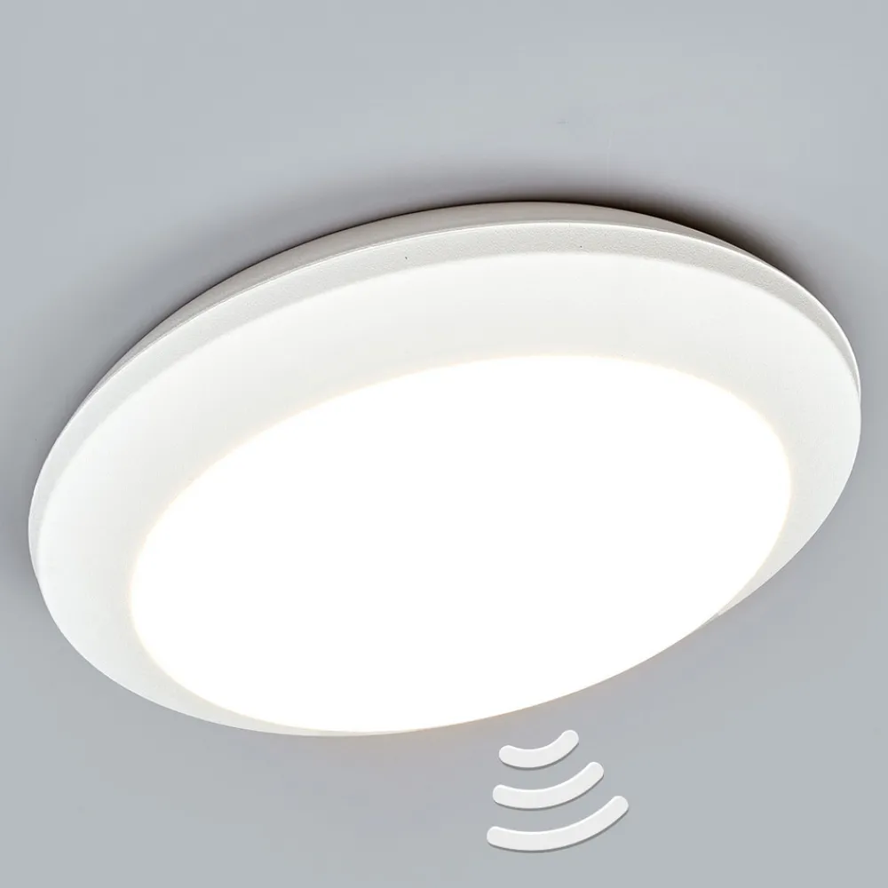 Hvit sensor-taklampe Umberta til uteområdet