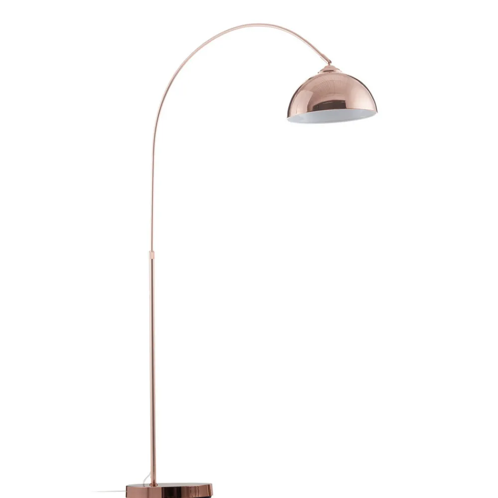 Høydejusterbar Pelin-gulvlampe i varm kobberfarge Med en utkragning på 92 cm beskriver Pelin-gulvlampen en vakker lysbue. Den er helt i kobberfarget metall, og den brede skjermen er hvit på innsiden og reflekterer lyset vakkert. Lampens høyde kan enkelt justeres fra 135 til maksimalt 196 cm. Pelin er den ideelle lyskilden til for eksempel sittegruppen i stuen. Utstyrt med bryter og 180 cm ledning.