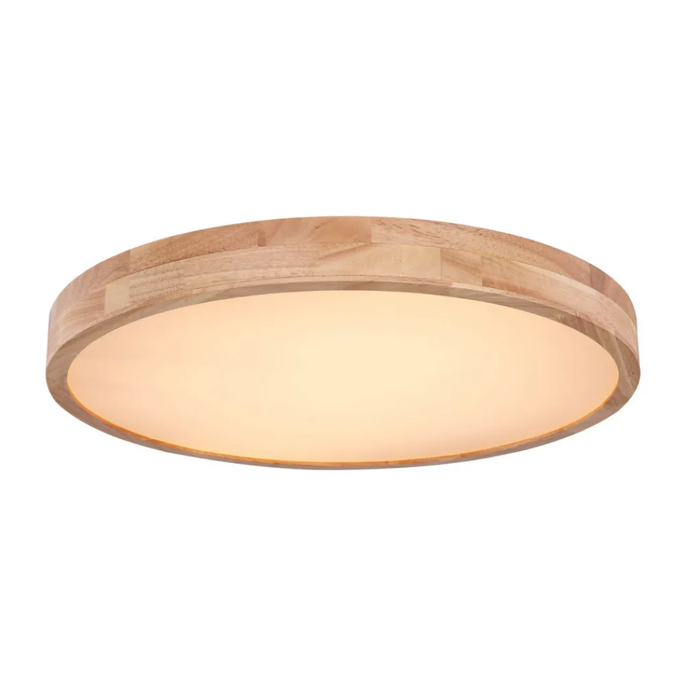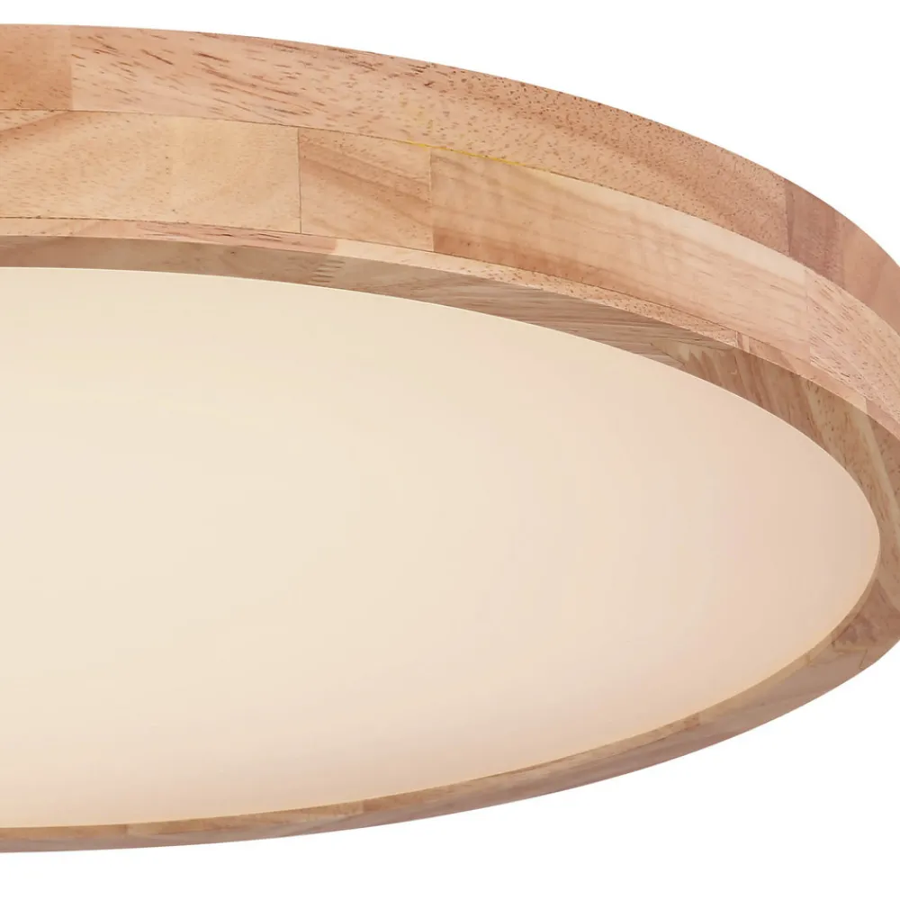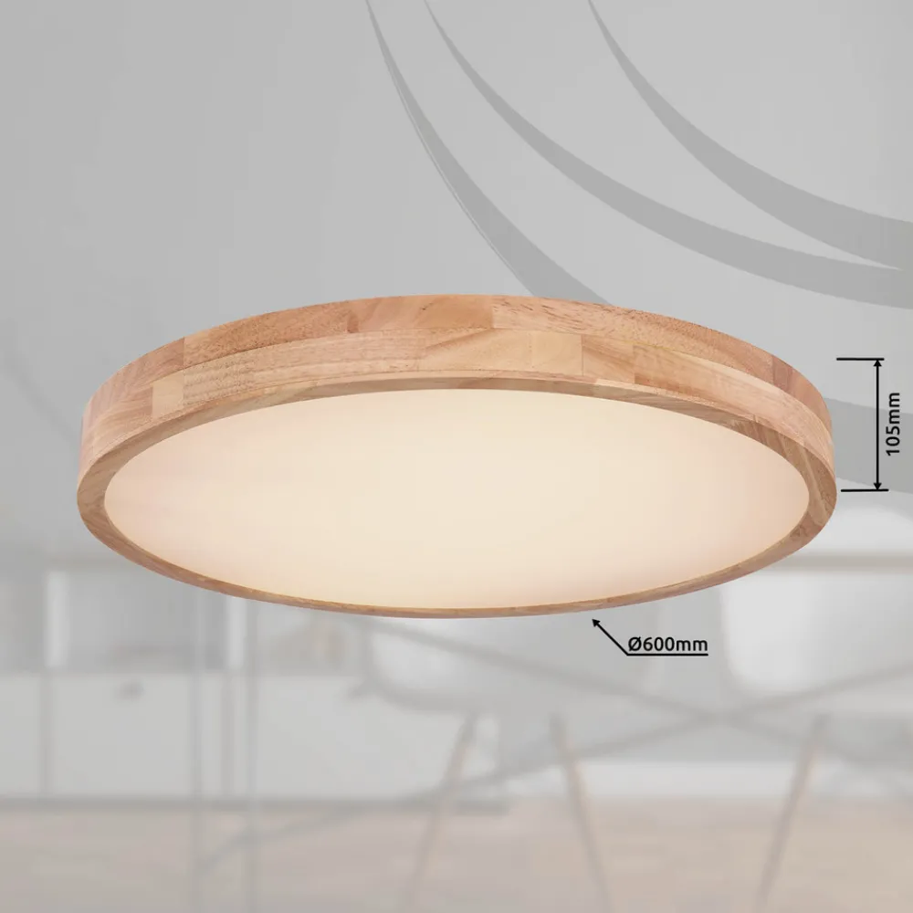 Rainer taklampe med regulerbar lysfarge (CCT) Rainer taklampe har en ramme i treeffekt og er et blikkfang i alle rom. Avhengig av stemningen kan fargetemperaturen enkelt justeres fra lysfargen varmhvit til universalhvit og dagslys ved hjelp av en fjernkontroll eller en ekstern veggbryter. Takket være sin nøytrale sjarm kan denne lampen brukes universelt i ulike rom i huset. Fjernkontroll medfølger (2 x AAA-batterier medfølger) – Lysfargene kan stilles inn – Minnefunksjon medfølger – Timer medfølger – Justerbart nattlys