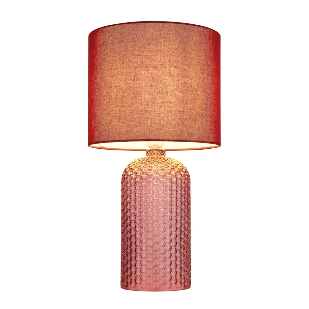 Sofia bordlampe, rød, høyde 50 cm, stoff/glass