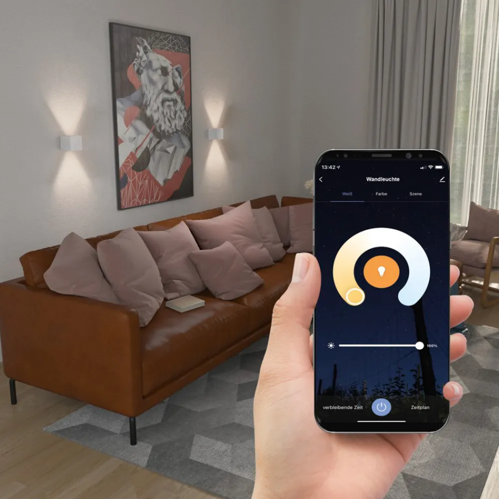 Fungerer uten gateway: Smart kontrollerbar LED-vegglampe WLAN, Up-