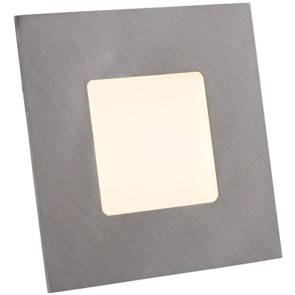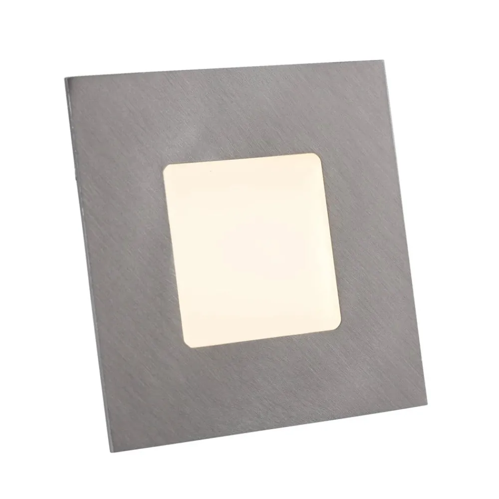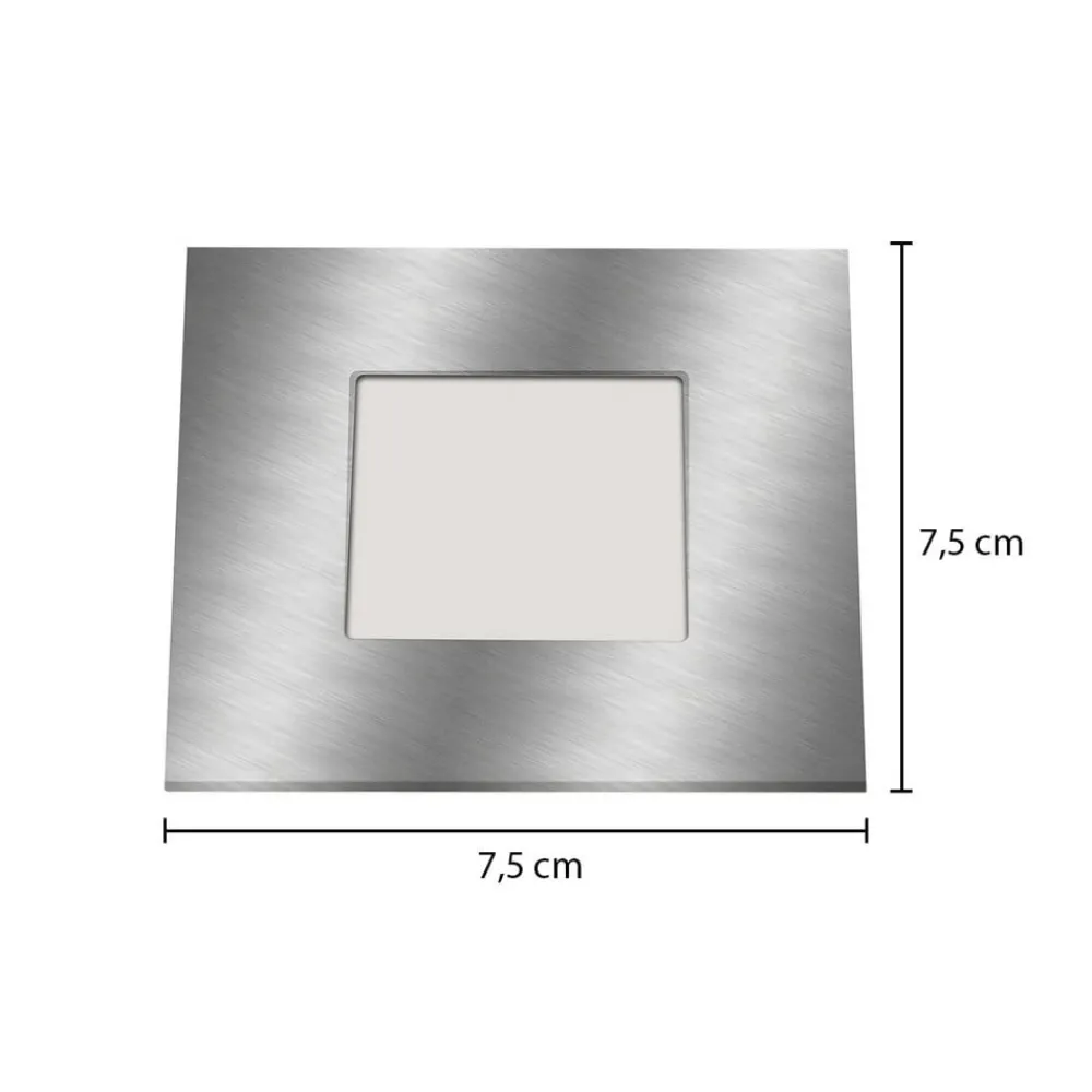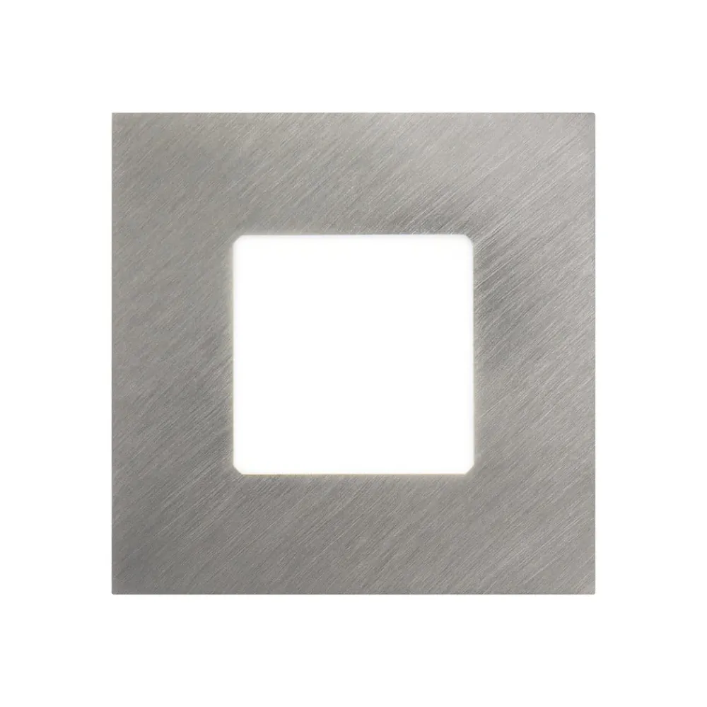 Attraktivt Klaus LED-panel for praktisk installasjon i bryterbokser Klaus LED-panelet avgir et varmhvitt lys (33 lumen) med sine 12 fastmonterte LED-lamper og setter elegante aksenter. Flere Klaus LED-paneler kan kombineres for å skape et utmerket orienteringslys, f.eks. for å belyse trappetrinn. Huset er laget av en aluminiumslegering, og ballasten er inkludert i leveransen. Den er enkel å installere takket være den praktiske installasjonsboksen – LED-driver (inkludert) – Innfelt boks (ikke inkludert)