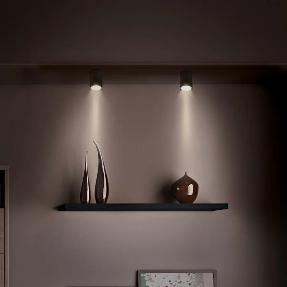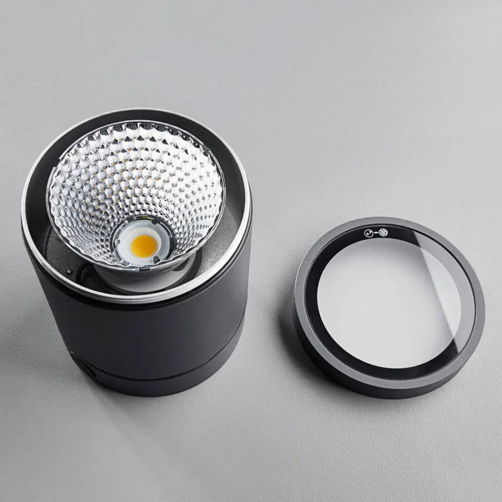 Negro LED utendørs taklampe er ideell for utendørs bruk takket være IP65- kapslingsgrad . Armaturen består av et grafittfarget aluminiumhus med en matt lys utgangsflate. Dette gjør den spesielt egnet for aksentbelysning i kombinasjon med andre taklamper.