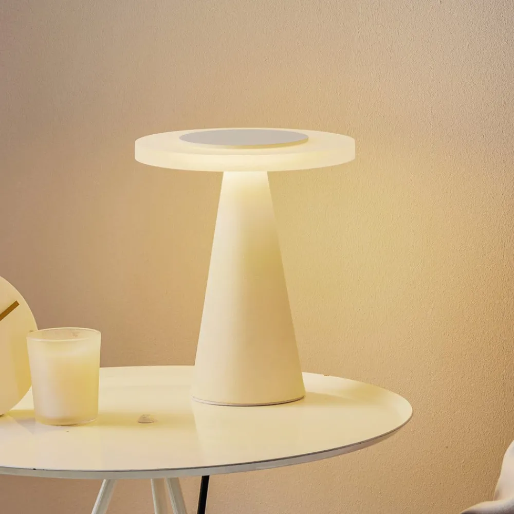 Bax LED-bordlampe i moderne design med berøringsfunksjon Bax LED-bordlampe kan brukes overalt i den moderne stuen og gir et svært behagelig og effektivt ekstra lys; den futuristiske designen gjør Bax-bordlampen til et dekorativt objekt. Lampens koniske base smalner av mot toppen og er laget av matt hvitlakkert metall. De varmhvite LED-lampene avgir et svært behagelig lys. Bax LED-bordlampe kan ikke bare slås av og på ved hjelp av berøringsfunksjonen i sokkelen, den kan også dimmes i tre trinn. Den første berøringen slår lyset på, og en ny berøring umiddelbart etterpå starter dimmeprosessen.