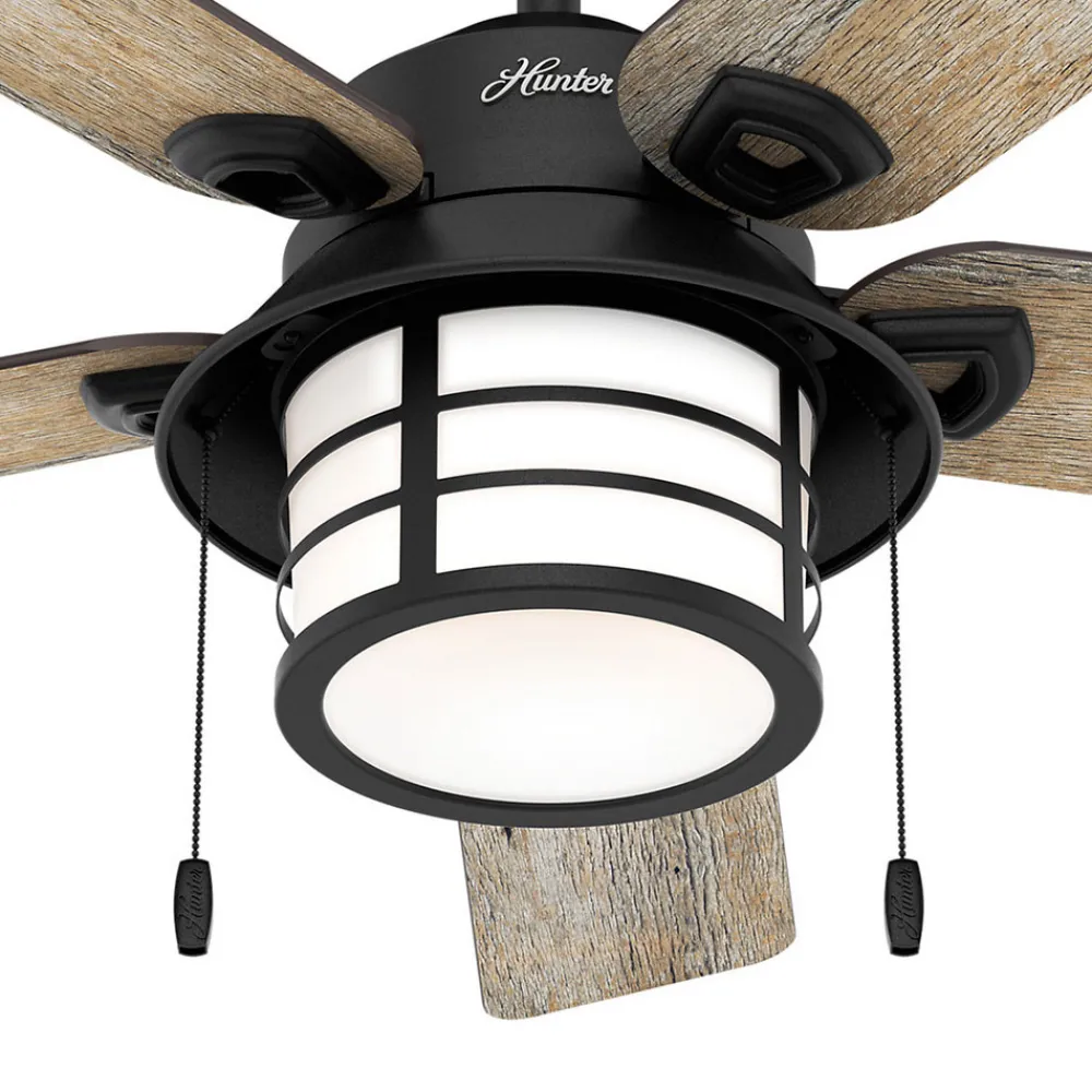 Takviften Santorini i industriell stil kan både benyttes innendørs og i beskyttede uterom, for eksempel på en veranda med tak. Lampen i midten har to E27-fatninger.