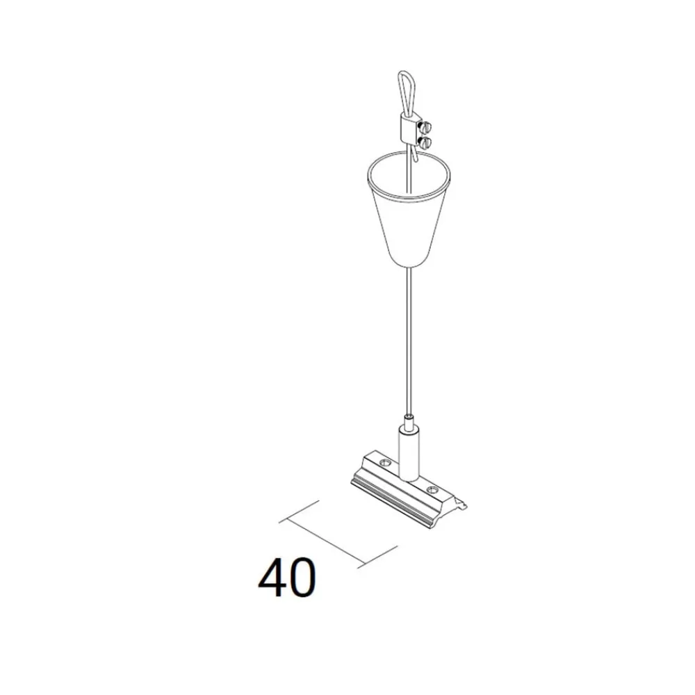 Denne opphenget med 200 cm ståltau, baldakin og skinnefestplate er beregnet for SQUARE 48 V strømskinner fra Ivela. Dette muliggjør pendelmontasje av lavspenningsskinnesystemet. Låsemekanismen muliggjør høydejustering.