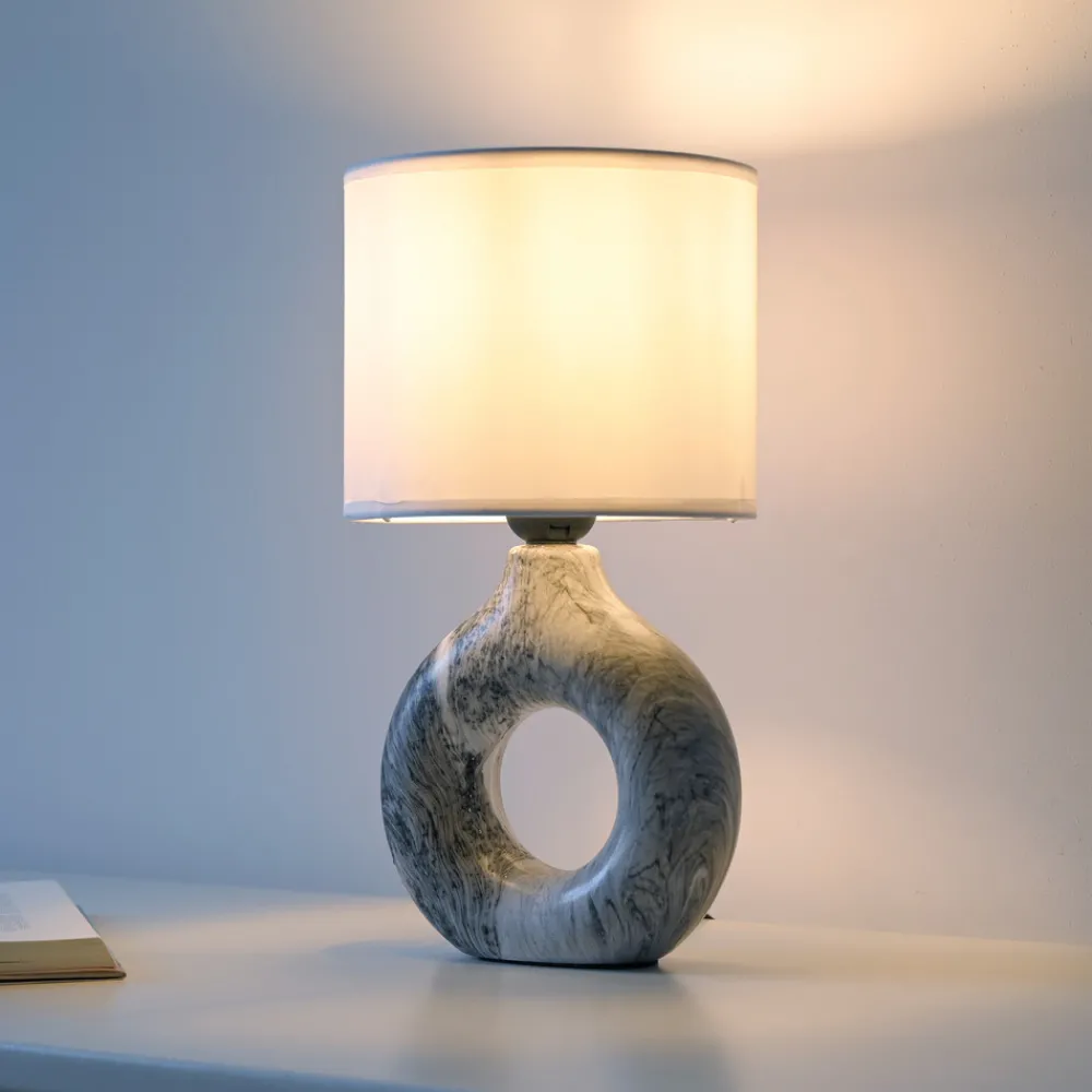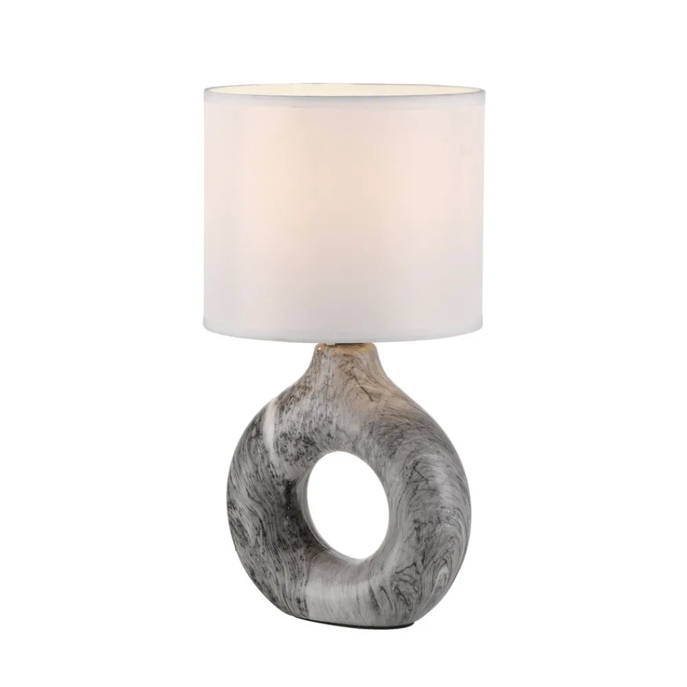 JUST LIGHT. Carara bordlampe, keramisk fot, grå