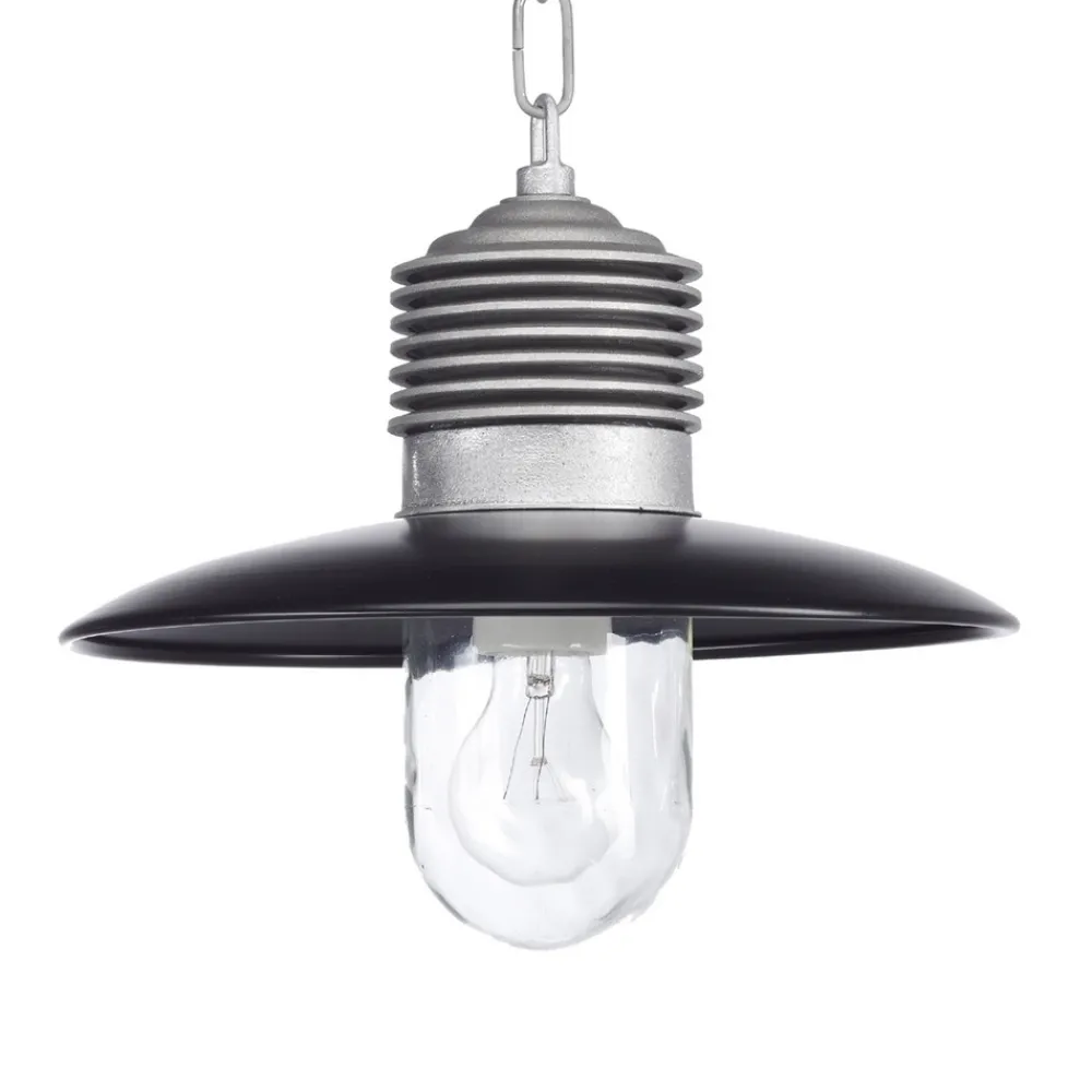 Ampere utendørspendel på robust kjedeoppheng Ampere utendørspendel kjennetegnes av sin klassiske design og robuste aluminiumskonstruksjon, som er brukt til å produsere oppheng og ramme. Armaturhuset i klart glass gir et sterkt lys, noe som gjør armaturen ideell til omgivelsesbelysning i fabrikkhaller, verksteder osv. Ampere har kapslingsgrad IP44, dvs. at den er beskyttet mot vannsprut og faste fremmedlegemer med en diameter på 1 mm. Inkluderer 1 meter kabel.