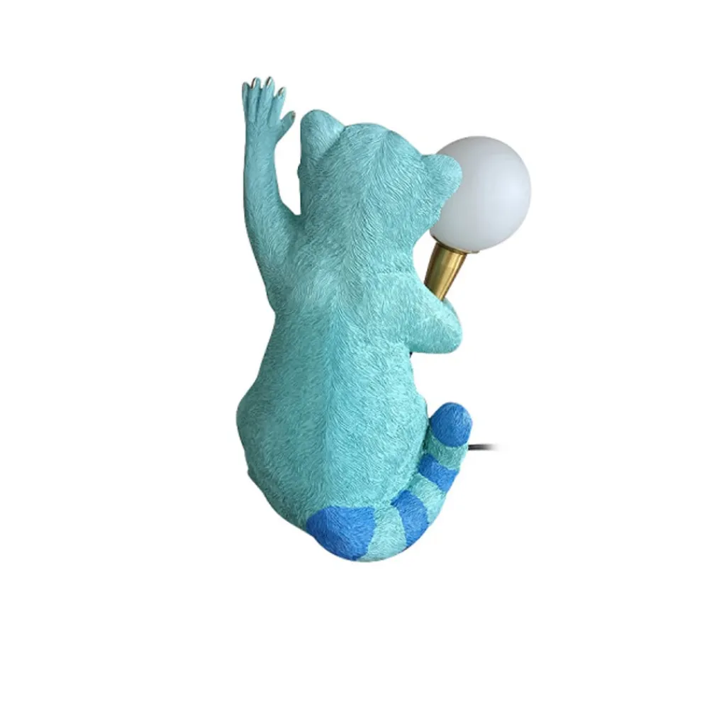 Dekorativ Racoon bordlampe – designet som en fargerik vaskebjørn Racoon bordlampen, som er laget av kunstharpiks og designet som en vaskebjørnfigur, fungerer som en ekstra lyskilde og dekorativ gjenstand på samme tid. Den holder kabelen med poten, som fører inn i en G4-fatning. Med sin fargerike design appellerer Racoon bordlampe også til unge dyrefans.