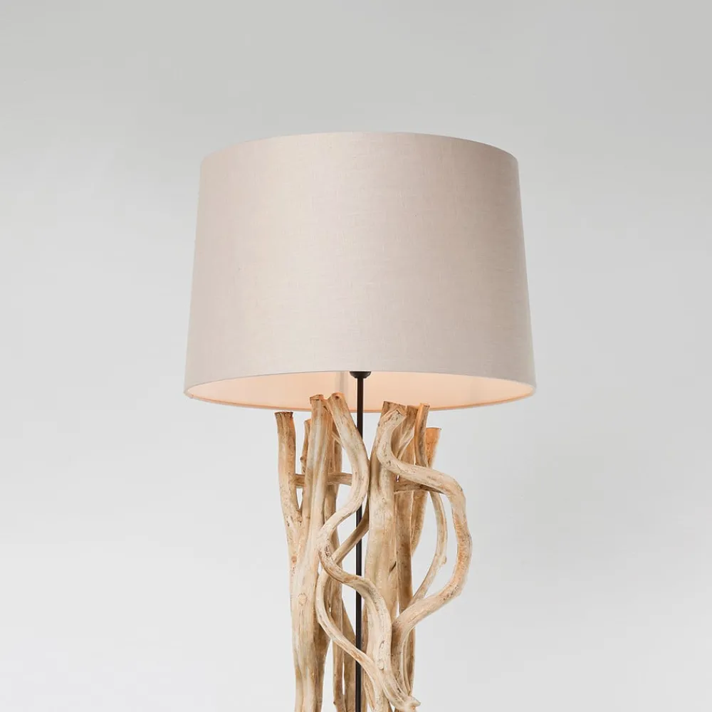 Scultra – gulvlampe med stoffskjerm og avskallede grener Denne gulvlampen fra Kare beriker oppholdsrom med sitt naturlige preg. Noen vil kanskje si at det er fint å være omgitt av naturmaterialer, men at dette noen ganger kan virke ganske rustikt, gammeldags eller til og med stusselig. Scultra er en helt annen historie, der det sammenflettede akasietreet har en organisk og livlig effekt og danner en uvanlig kombinasjon med den tidløse bomullsstoffskjermen. Hver enkelt gulvlampe i Scultra-serien er helt unik. De lyse grenene er flettet sammen på forskjellige måter hver gang, og hver gang ser den annerledes ut – men trekonstruksjonen mister aldri sitt stilrene utseende.