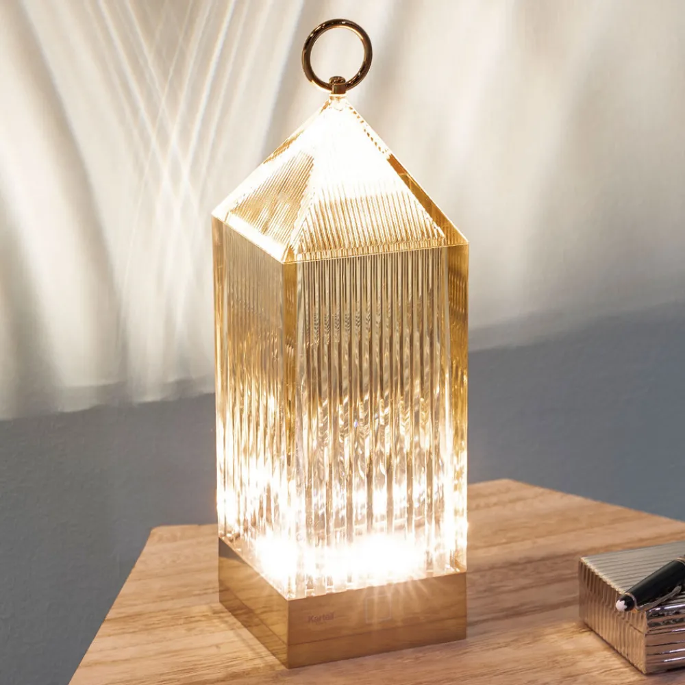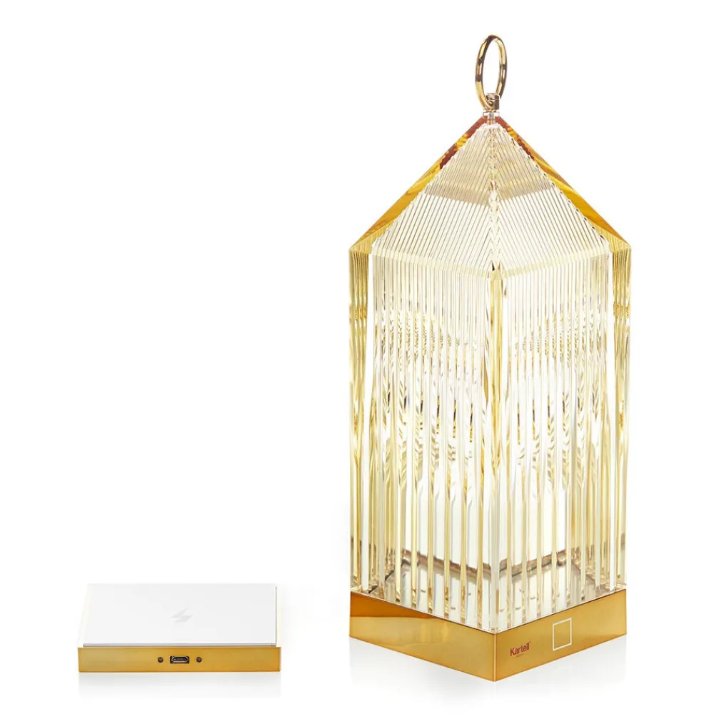 Den italienske arkitekten og designeren Fabio Novembre designet denne bærbare LED-bordlampe i form av en gammel, klassisk lykt. Spesialfunksjonen her: I et forsøk på å utstyre lykt så minimalistisk som mulig, er lyskilden bare festet til den nedre basen av lampen. For å la lyset skinne sterkt nok, kommer lykt spesielle overflate til spill. Fasettene i kroppen sørger for at den bærbare lykt gir nok lys. Høydepunktet for den universelt anvendelige lampen: ladestasjonen som Lantern LED-bordlampe kan lades på.