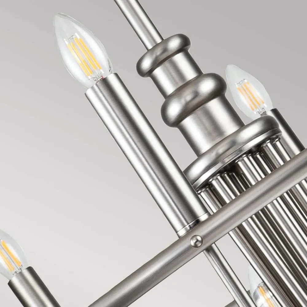 Capitol Hill lysekrone, 12 lyskilder, børstet nikkel