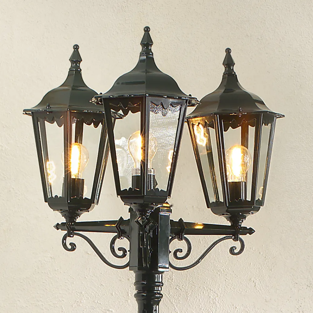 Den fortryllende lyktestolpen FIRENZE i aluminium med tre lys sørger for et nostalgisk touch