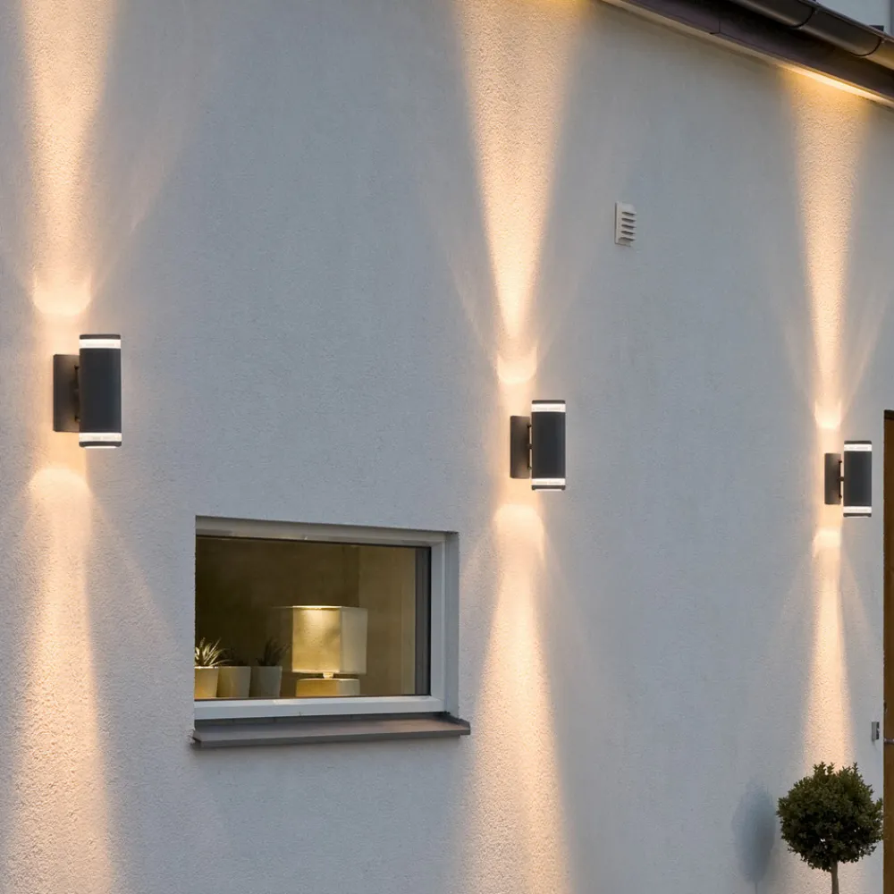 Den sirlige formen trenger ikke mye plass, og den har mange anvendelsesmuligheter Lyset som stråler oppover og nedover, sendes ut indirekte, noe som gir en behagelig belysning av inngangsområdet eller fasaden og skaper attraktive lyseffekter.
