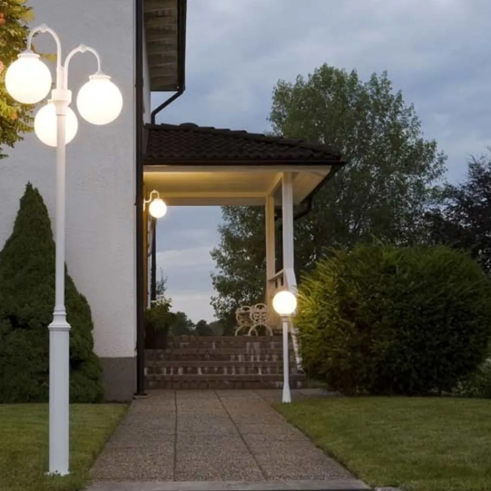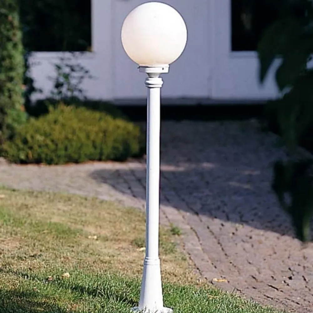 Klassisk veilampe med en kuleglasskjerm i opal farget akrylglass. Ved det matte akrylglasset stråler et behagelig lys ut.