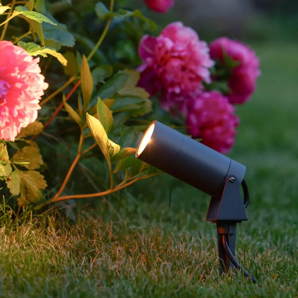LED-spot med jordspyd med justerbar lyseffekt LED-spot med jordspyd 5131 er utstyrt med en 3 m lang tilkoblingskabel og et jordet støpsel. Ved hjelp av jordspydet kan lampen plasseres hvor som helst i bakken, langs stier, i blomsterbed osv. Lysstyrken på lampen med jordspyd kan varieres.