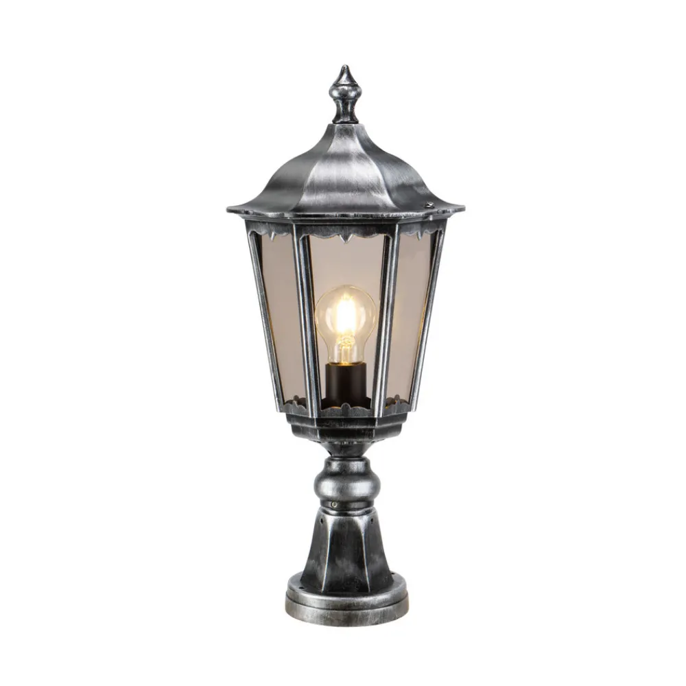 Sokkellampe 1112 av støpt aluminium svart-sølv
