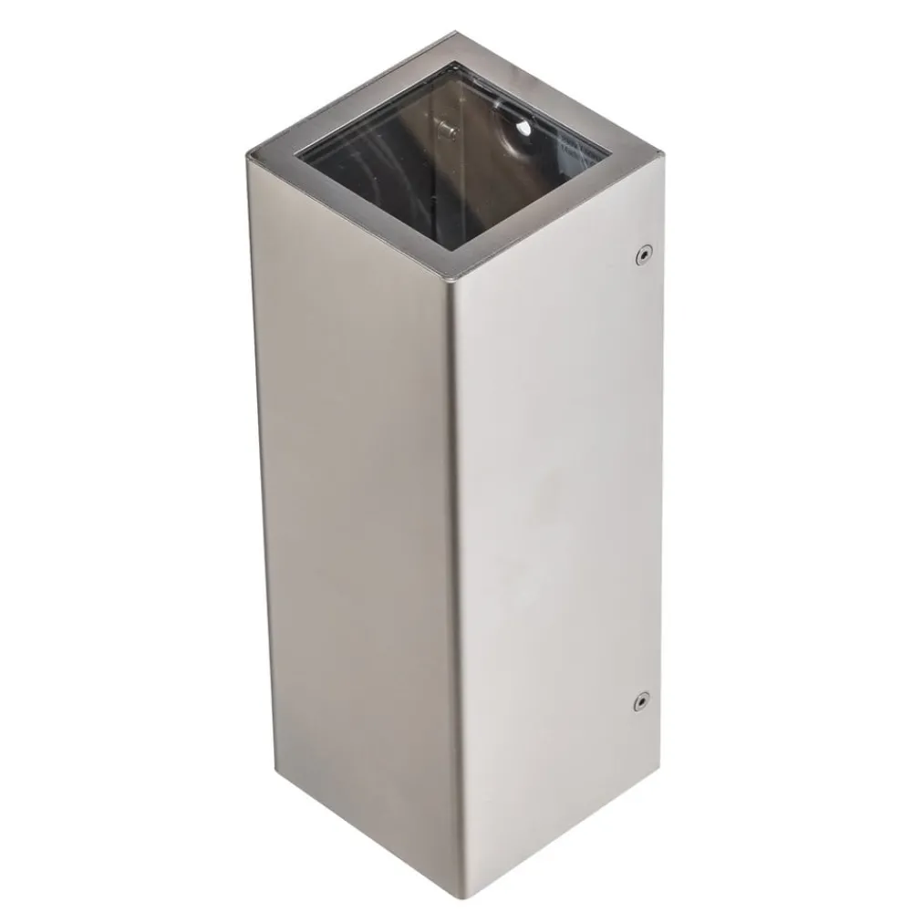 Hos utendørs vegglampen Senta er det lyseffekten som står i fokus. Det er derfor ikke overraskende at designet er holdt enkelt. Om dagen kompletterer den kantete kroppen i høykvalitets stål det moderne utformede uteområdet, og først når mørket faller på, viser den et flott lysspill på veggen. Lyset sendes både oppover og nedover gjennom satinert floatglass, slik at husveggen blir perfekt belyst.