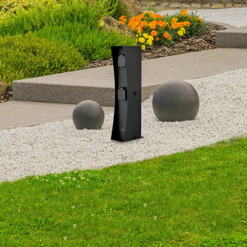 Connect-stikkontaktsøyle for utendørs bruk Denne Connect-stikkontaktsøylen gir tilkoblingsmuligheter for elektriske hageredskaper og annet – fra hekksakser og gressklippere til lyskilder for stemningsfull belysning om kvelden. Stikkontaktsøylen i rustfritt stål kan belastes med en samlet effekt på opptil 3 500 W. Stikkontaktene lukkes med et hengslet deksel – Inkluderer to stikkontakter