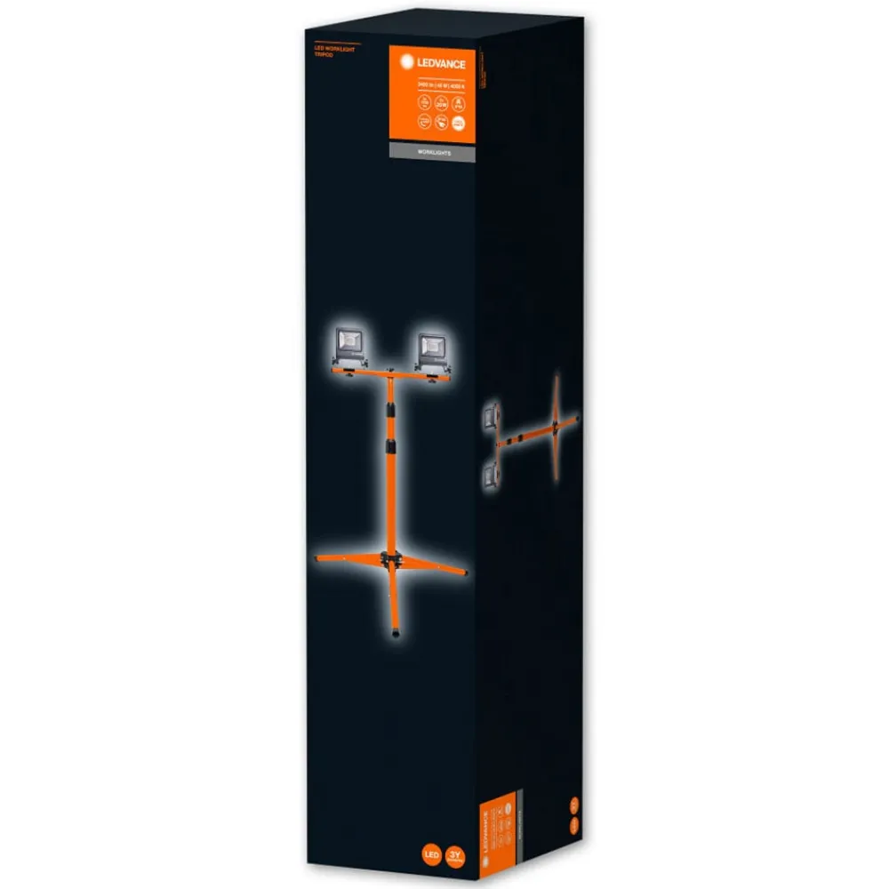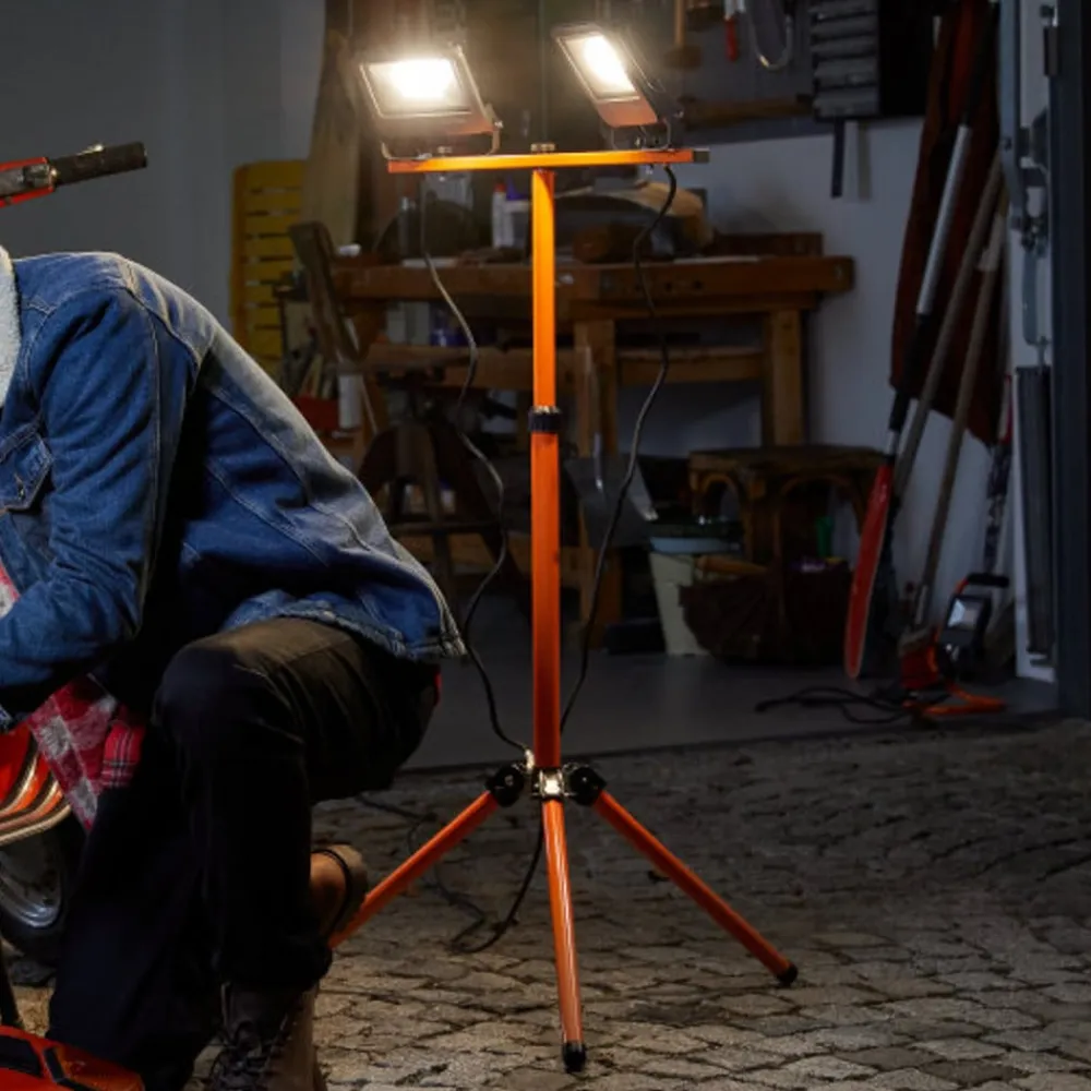 Worklight Tripod LED-arbeidslampe -konstruksjonsspotten er et kraftig arbeidslys som er spesielt nyttig for oppussing og byggearbeid. LED-lyset har stativ som kan justeres i høyden. De integrerte lysdiodene i de to lampeskjermene sender ut et kjølig hvitt lys, som fordeles jevnt av det delvis frostede, herdede glassdekselet. arbeidslampe var laget av aluminium og stål og er meget robust. Takket være beskyttelsesgraden kapslingsgrad er LED-lyset beskyttet mot både skitt og kraftig regn. I tillegg tåler den lett omgivelsestemperaturer fra -20 °C til 45 °C, noe som gjør den til den ideelle lyskilden for utendørsarbeid. Lampen kan foldes sammen for å spare oppbevaringsplass.
