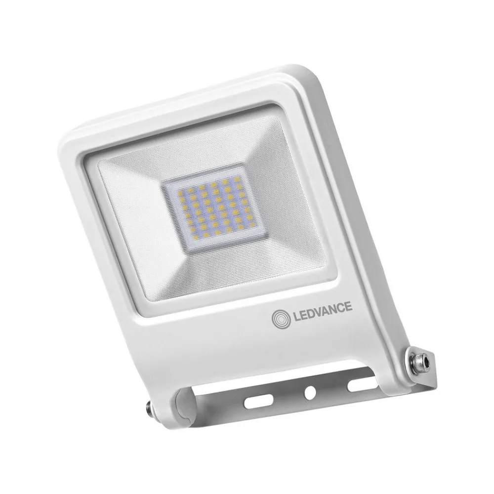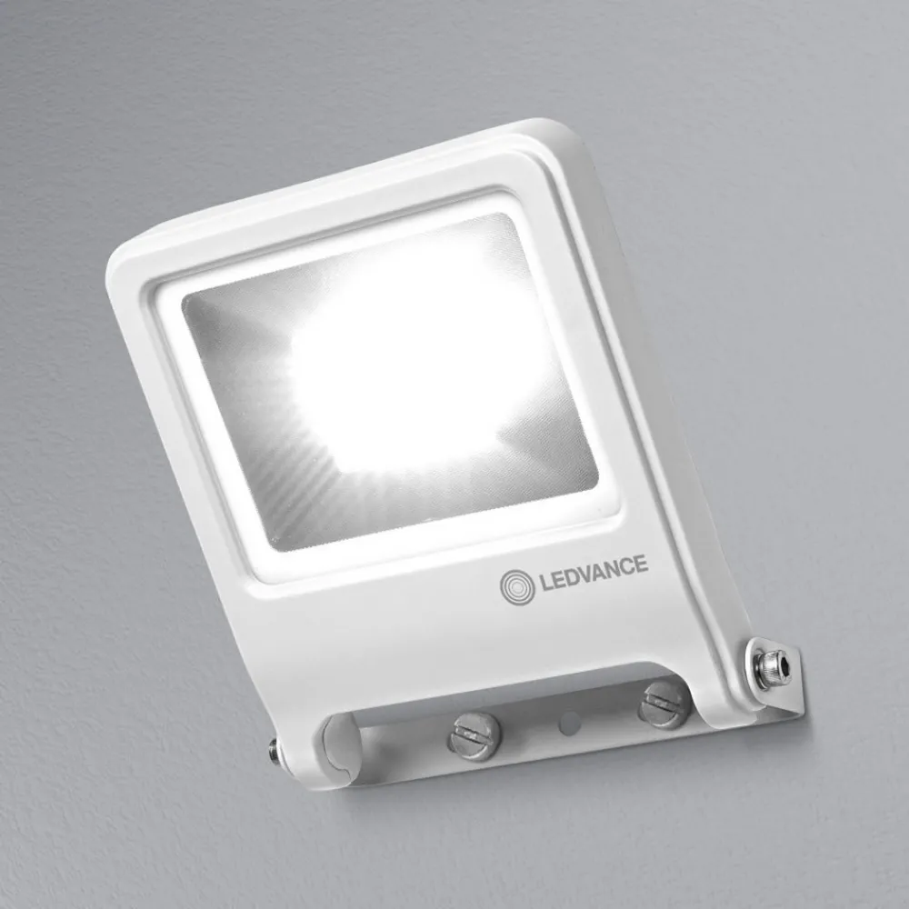 Med en symmetrisk strålevinkel på 110° x 110°, er Endura Flood LED utendørs spotlight den perfekte lyskilden for å belyse uteområder. Det delvis frostede dekselet av herdet glass sørger for en jevn fordeling av lyset. Hvis LED-spotlight er montert på fasaden, kan den brukes til å lyse opp parkeringsplasser og innkjørsler. Sammenlignet med bruk av halogenlamper, er det mulig å spare opptil 80 % energi ved bruk av LED-spotlight. Med en kapslingsgrad på IP65 er det hvite aluminiumshuset spesielt robust, slik at det er støvtett og selv kraftig regn kan ikke skade det. I tillegg tåler radiatoren enkelt omgivelsestemperaturer på -20 °C til 45 °C under drift.