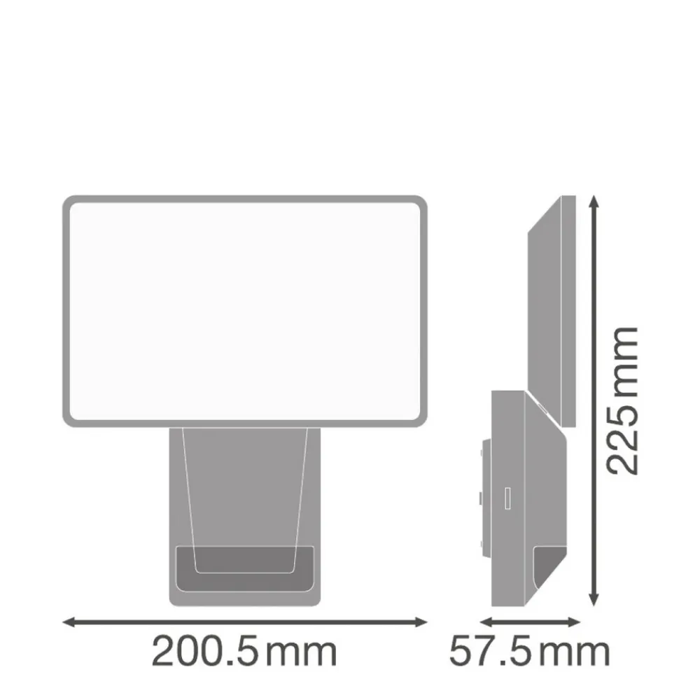 Med LED utendørs veggspotlight Endura Pro Flood kan utearealer som innkjørsler, innganger og arkader lett lyses opp når mørket allerede har senket seg. Så snart sensoren registrerer en bevegelse, blir den fokuserte ytre overflaten jevnt opplyst med en strålevinkel på 100° med sterkt, kjølig hvitt lys. Et svingbart og justerbart lampehode muliggjør også behovsbasert lampehode . Huset er laget av polykarbonat og er spesielt robust. IK05-klassifiseringen for slagfasthet garanterer at verken hånd- eller knyttneveslag kan skade varmeren. Takket være isolasjonsklasse IP55 er den også værbestandig, slik at verken skitt eller kraftig regn kan skade lampen.
