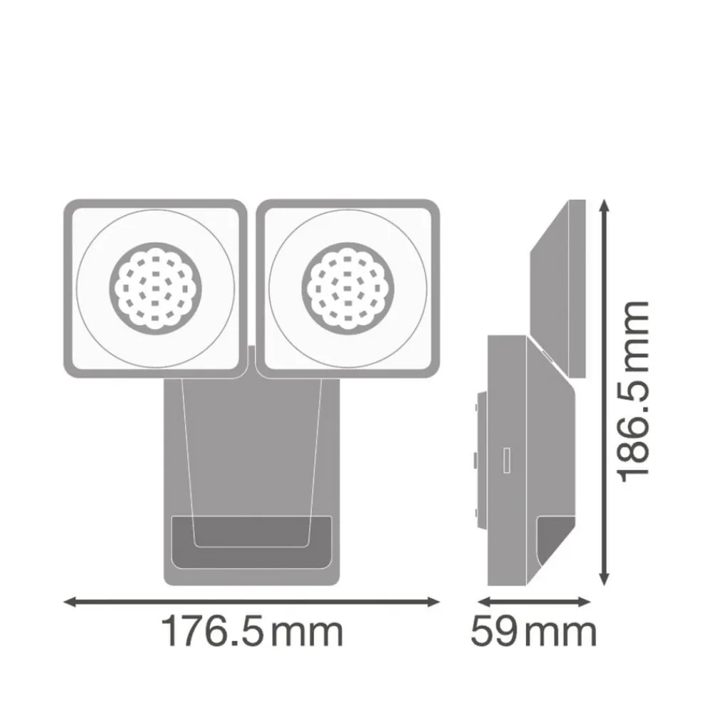 Endura Pro spotlight LED utendørs veggspotlight kan brukes til utendørs belysning og til å lyse opp innganger, arkader eller lignende. De to lampehodene er svingbare og utstyrt med kjølige hvite lysdioder. Ulike innstillingsmuligheter kan velges for behovsbasert belysning. Enten 6 timer med permanent lys, standby-modus eller slå på når det er bevegelse eller i skumringen. Polykarbonathuset er robust og takket være isolasjonsklasse IP55 er det også godt beskyttet mot sterke værforhold.