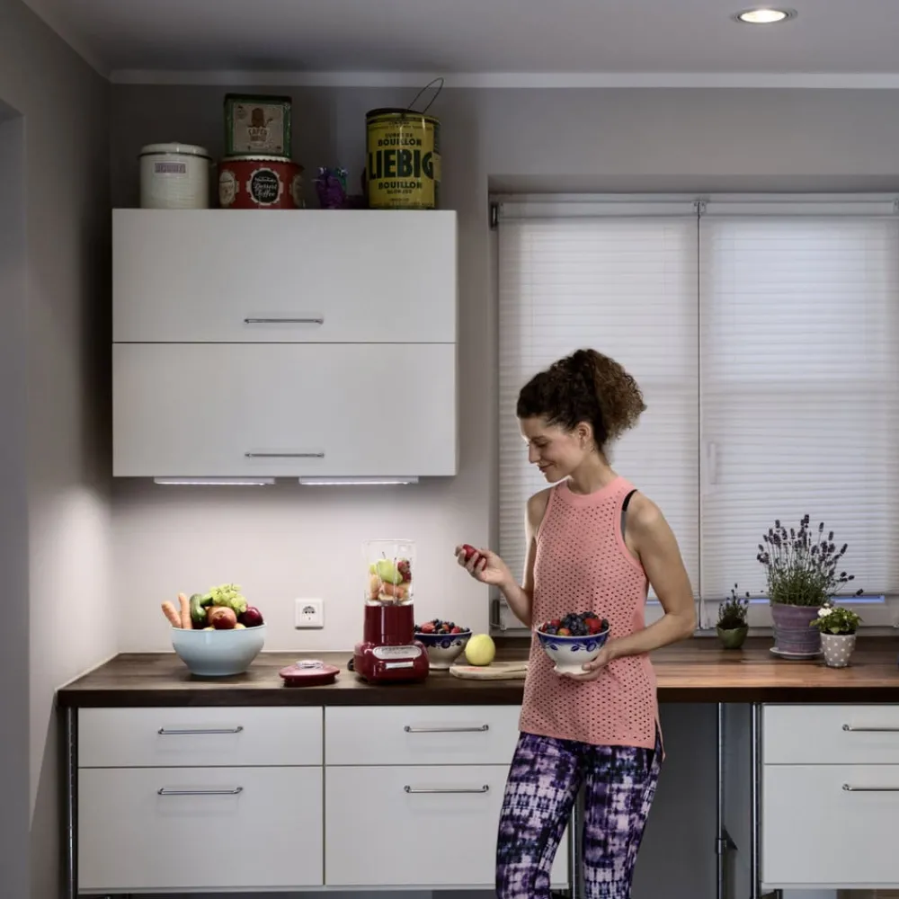 Den batteridrevne benkarmatur LinearLED Mobile inspirerer med sin diskrete design i hvitt så vel som med sin pålitelige funksjonalitet i en rekke boligområder, for eksempel i kjøkken eller i soverom til garderober. Batteriene som inngår i leveringsomfanget kan enkelt byttes ut.