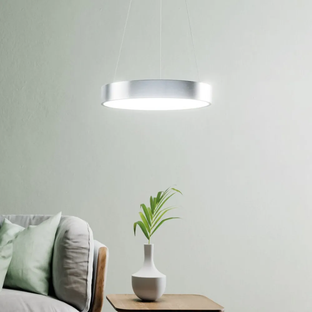 Ringformet LED-pendel SUN@Home Circular med LEDVANCE SMART+ WiFi-teknologi SUN@Home Circular er laget av aluminium i en enkel ringform med monokrom finish og er en visuelt diskret pendel som passer i nesten alle miljøer. Innsiden er utstyrt med lysdioder som kan justeres med hensyn til fargetemperatur og lysstyrke. Sistnevnte justeres automatisk etter menneskets biorytme eller styres aktivt med et trykk på nettbrettet/smarttelefonen eller med talekommando.