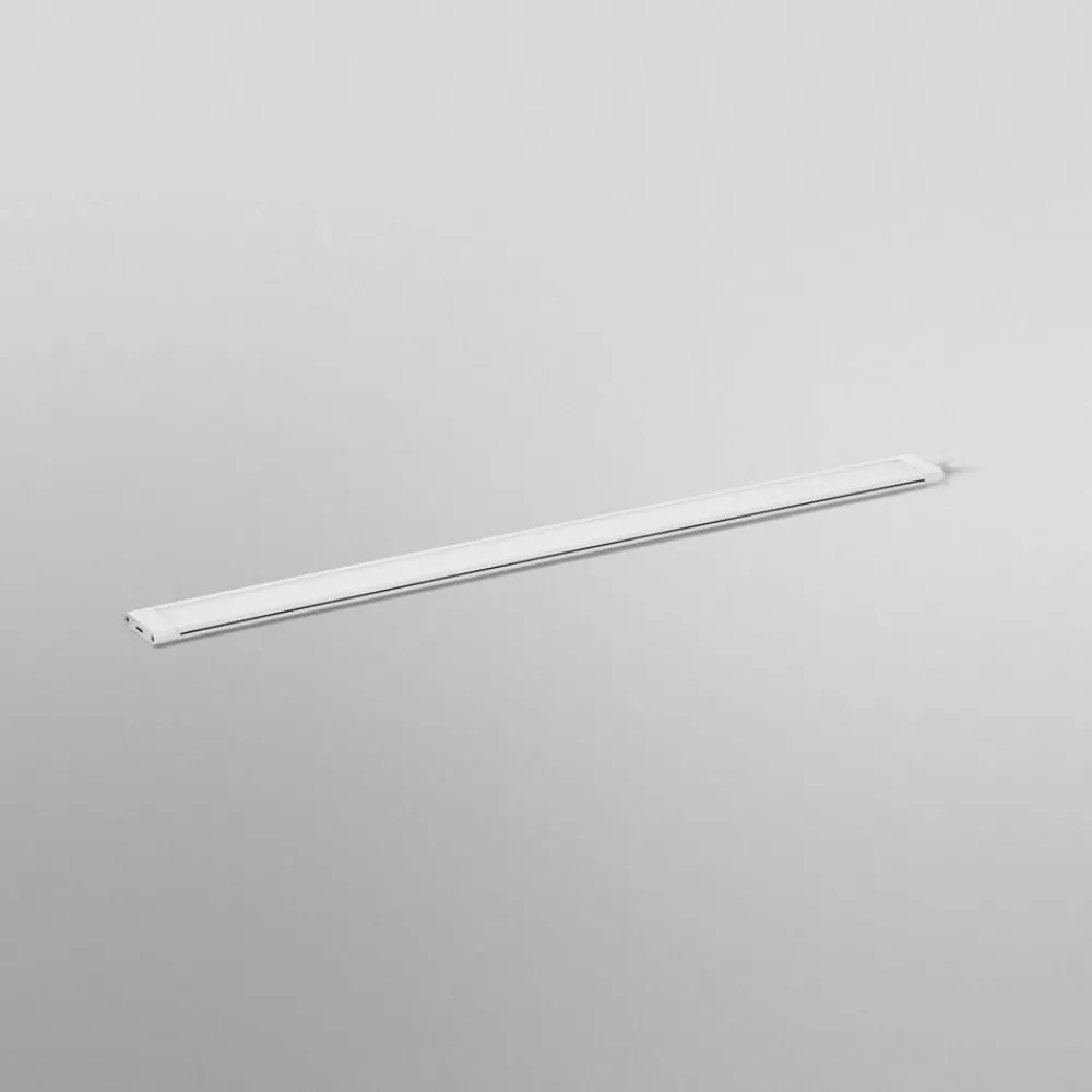 LED-benkbelysning underskapslys Underskap er den ideelle lyskilde på kjøkkenet og kan brukes under skap eller hyller. Den består av aluminium og plast og er utformet i ensfarget hvit. Festing er rask og enkel ved hjelp av limstrimler eller skruer (begge inkludert). Strømforsyning og kontrollenhet er også inkludert. Lysstyrke og fargetemperatur kan styres via app og talekommando. Integrasjonen skjer med LEDVANCE SMART+ WiFi-teknologien via WLAN.