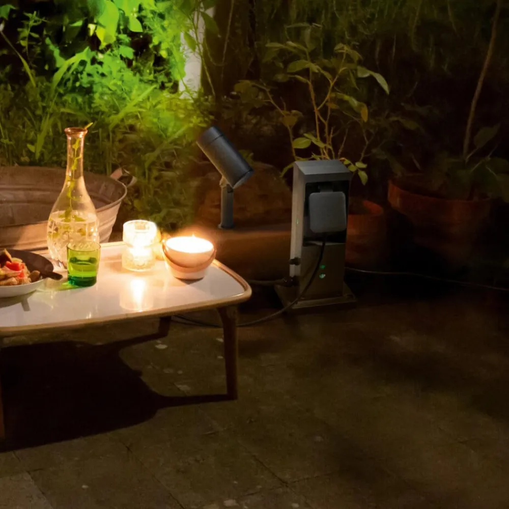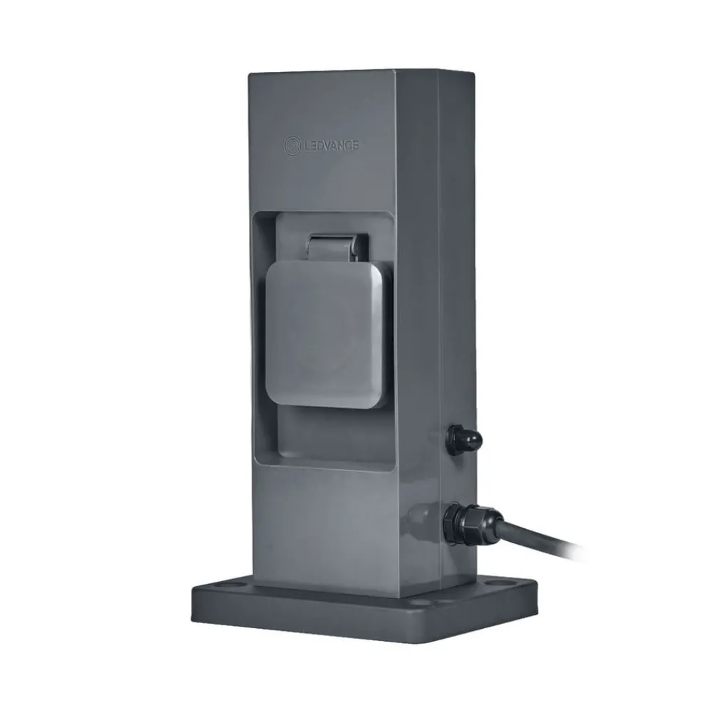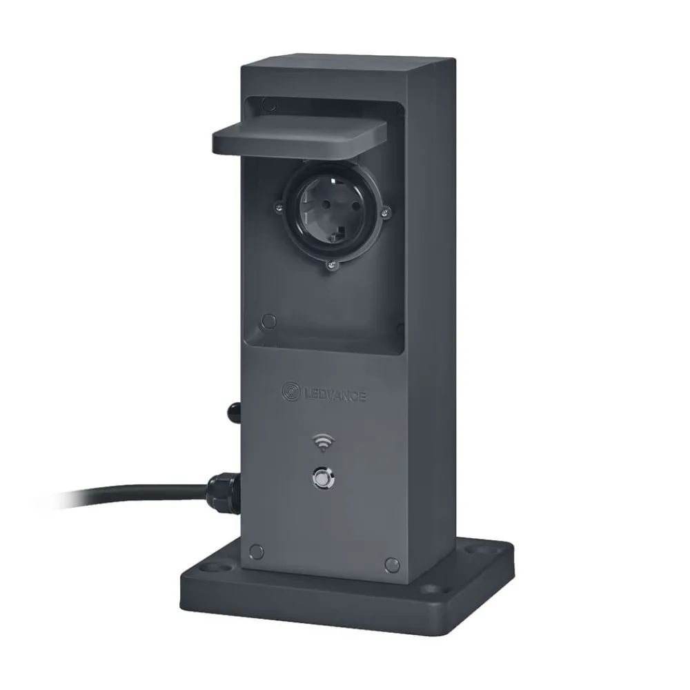 SMART WiFi utendørs stikkontaktsøyle med integrert WLAN-forsterker og to smarte stikkontakterDenne stikkontaktsøylen muliggjør smart styring av vanlige elektriske enheter utendørs via LEDVANCE SMART WiFi-appen (tilgjengelig for Android og iOS) på nettbrettet/smarttelefonen eller stemmestyring via Google Assistant og Amazon Alexa. De to standardkontaktene er beskyttet med klaffer og kan kobles individuelt og styres automatisk i henhold til tidsplaner. Den integrerte WiFi-forsterkeren forlenger rekkevidden til 45 m utendørs og gjør det mulig å integrere totalt 15 WiFi-kompatible enheter i nettverket.- Egnet for alle elektriske apparater med vanlig støpsel- Med jordspyd og utendørs støpselkabel for 230 V-tilkobling (inkl. kabelkontakt for forlengelse)- Høy koblingskapasitet på opptil 3680 W/16 A – Beskyttelsesklasse: IP44- Overbelastnings- og overspenningsvern