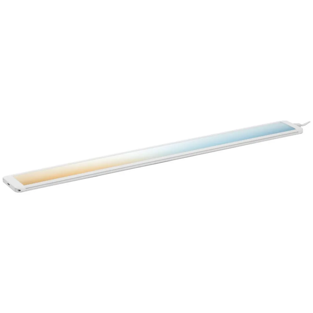 LED-benkbelysning underskapslys Underskap er den ideelle lyskilde på kjøkkenet og kan brukes under skap eller hyller. Den består av aluminium og plast og er utformet i ensfarget hvit. Festing er rask og enkel ved hjelp av limstrimler eller skruer (begge inkludert). Strømforsyning og kontrollenhet er også inkludert. Lysstyrke og fargetemperatur kan styres via app og talekommando. Integrasjonen skjer med LEDVANCE SMART+ WiFi-teknologien via WLAN.