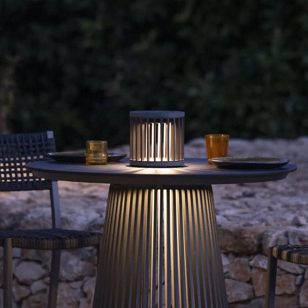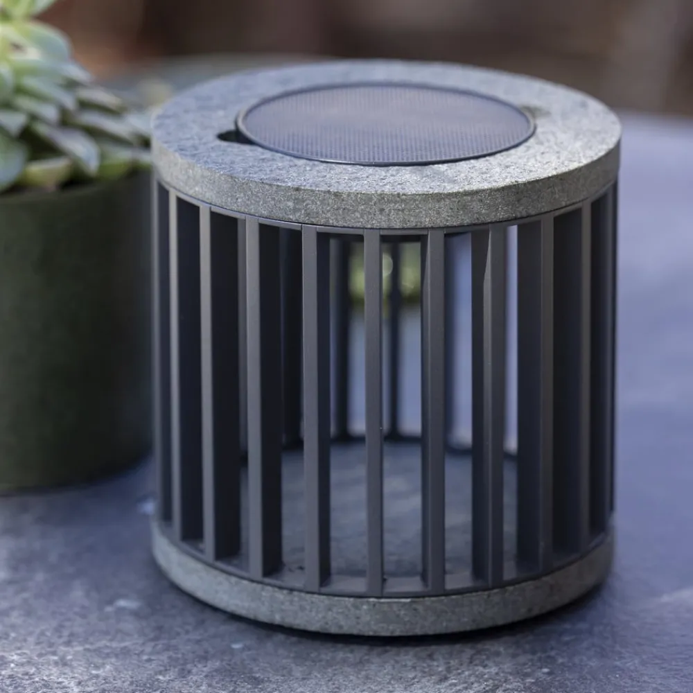 Les Jardins LED-solcellelampe Halo, grå, aluminium/granitt| Solcellelamper
