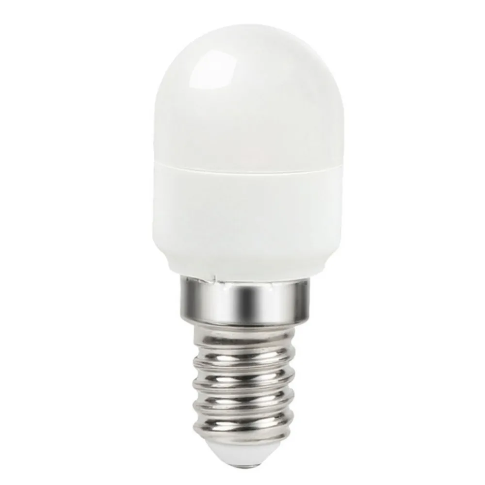 E14 3,2 W LED-kjøleskapslampe, varmhvit (2700 K)En vanlig kjøleskapspære på 25 W kan erstattes av denne LED-kjøleskapslampen, som i tillegg til den høye energibesparelsen gir en mye lavere varmeutvikling. Den lille E14-lampen er imidlertid også egnet til bruk i dekorative lamper, for eksempel i julebordslamper eller dekorative stjerner med E14-sokkel, der det er liten plass til pæren.