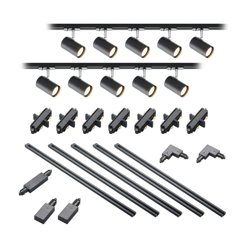 Lindby 1 lyskilde skinnesystem Linaro, GU10, 10 lyskilder, svart| Skinnesystem