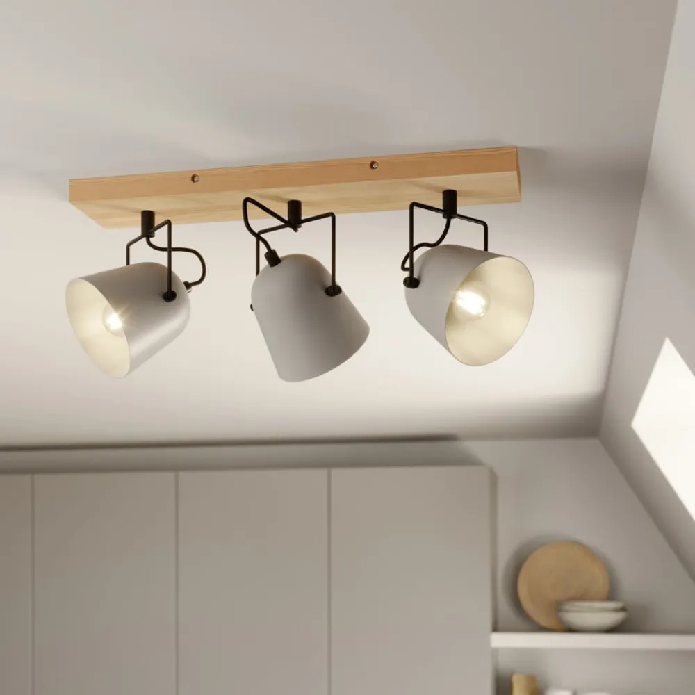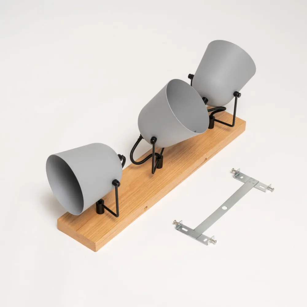 Tre-pære taklampe Adalin i grått i robust design laget av tre og stål