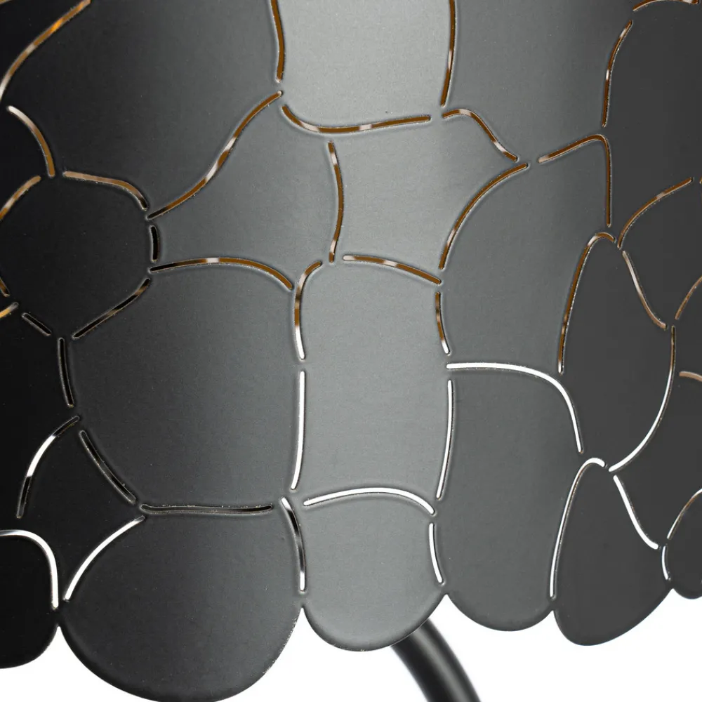 Aralena gulvlampe i metall med sylindrisk lampeskjerm i svart og gull Oppdag Aralena gulvlampe, som ikke bare er et visuelt høydepunkt med sitt tiltalende mønster i svart og gull, men som også har en betydelig innflytelse på atmosfæren i stuen din. Lampens moderne stil passer sømløst inn i moderne møbleringskonsepter og setter stilfulle aksenter. Aralena har en fotbryter som gjør den svært enkel å slå av og på. Opplev hvordan lyset kan forvandle stuen din og fascinere deg hver dag.