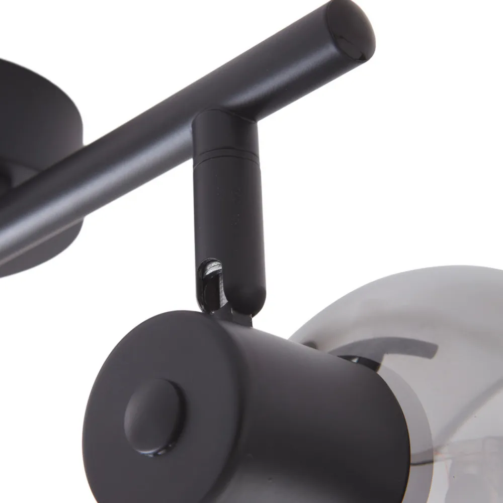 Filigran Arna taklampe med to glasskjermer i røykgrått Hvis du ønsker å integrere en taklampe i hjemmet ditt som ser dekorativ ut og samtidig gir behagelig lysstyrke, er Arna spotlight den perfekte løsningen. Taklampen er egnet for bruk med pærer med E14-sokkel. Den diskrete rammen er laget av jern og kommer i svart, mens de to lampeskjermene er laget av røykgrått glass. Takket være det fleksible leddet kan disse justeres på ulike måter. Dekorative lyskilder egner seg spesielt godt til belysning. Arna kan enkelt integreres i ulike interiørstiler og skaper en hyggelig atmosfære i kombinasjon med de matchende lampene.
